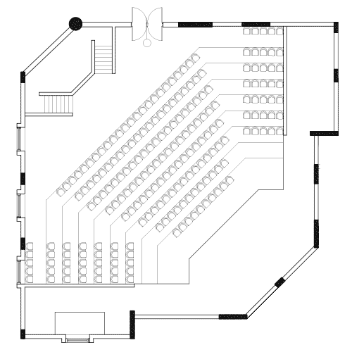 The hall is organized as an amphitheatre with 200 seats for events like discussion, seminar and conferences. The current technical equipment includes sound system; projection device; DVD; VCD; projection curtain; whiteboard; stand-poster board and flip-chart.