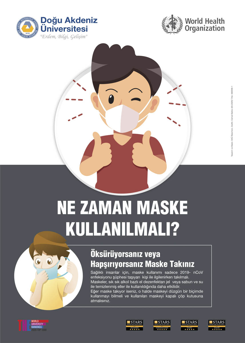 The statement put forth that one of the most important ways to prevent and control infectious diseases, including COVID-19, is to use hand antiseptics, which are now being distributed on campus. While it was stated that disinfection of common areas (offices, conference rooms, laboratories, university buses, etc.) is regularly applied around the campus, the committee emphasized that training activities are planned for students and employees. The committee is currently in the process of creating educational brochures to raise awareness and provide information on COVID-19, to be distributed in public areas. In the statement made by the committee, it was stated that the definitions of suspect cases described by the TRNC Ministry of Health were provided and that they were well equipped for the detection of suspicious cases. The websites recommended by EMU COVID-19 Awareness Committee in order to obtain correct information are listed below: