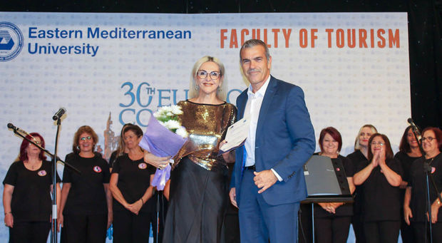 In addition to participants from 16 different countries, the ceremony was attended by Members of the Parliament from the Republican Turkish Party Teberrüken Uluçay and Şifa Çolakoğlu, the President of the Higher Education Planning, Evaluation, Accreditation and Coordination Council (YÖDAK) Prof. Dr. Turgay Avcı, EMU Board of Trustees President Dr. Erdal Özcenk, EMU Rector Prof. Dr. Hasan Kılıç, Mayor of Yeniboğaziçi Katip Demir, Deputy Directors from the Ministry of Tourism, Culture, Youth, and Environment, EURHODIP Board President and Vice Presidents, Dean of EMU Faculty of Tourism Prof. Dr. Ali Öztüren, faculty members, and students.