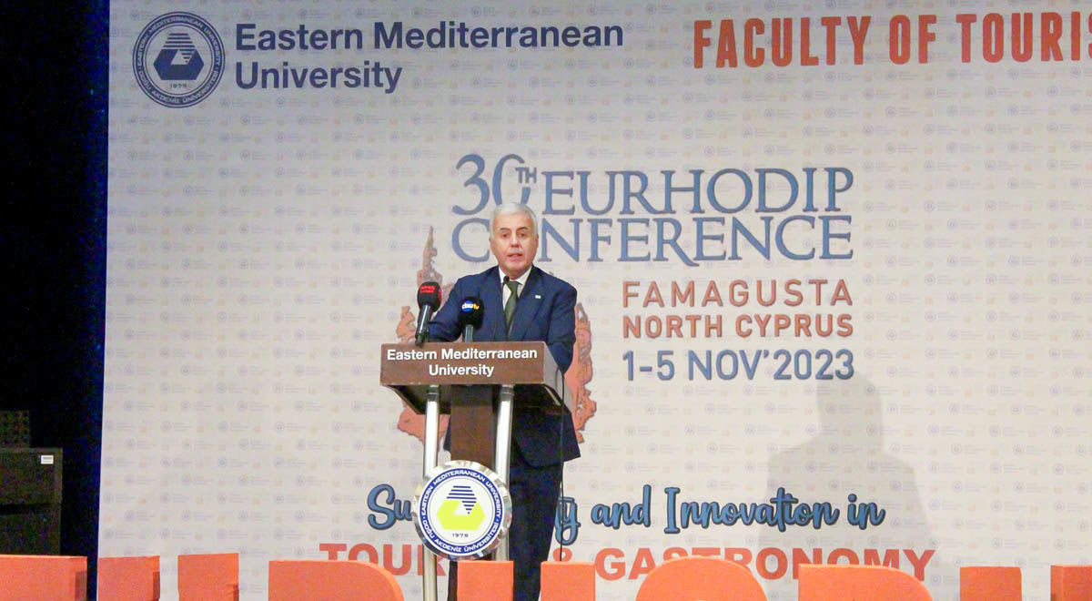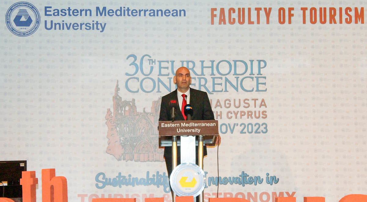 EURHODIP President Paulo Reves conveyed gratitude to EMU for their hospitality and provided insights into EURHODIP. Emphasizing the theme 'Sustainability and Innovation in Tourism and Gastronomy' for the conference, Reves highlighted that participants' work would shed light on this field."