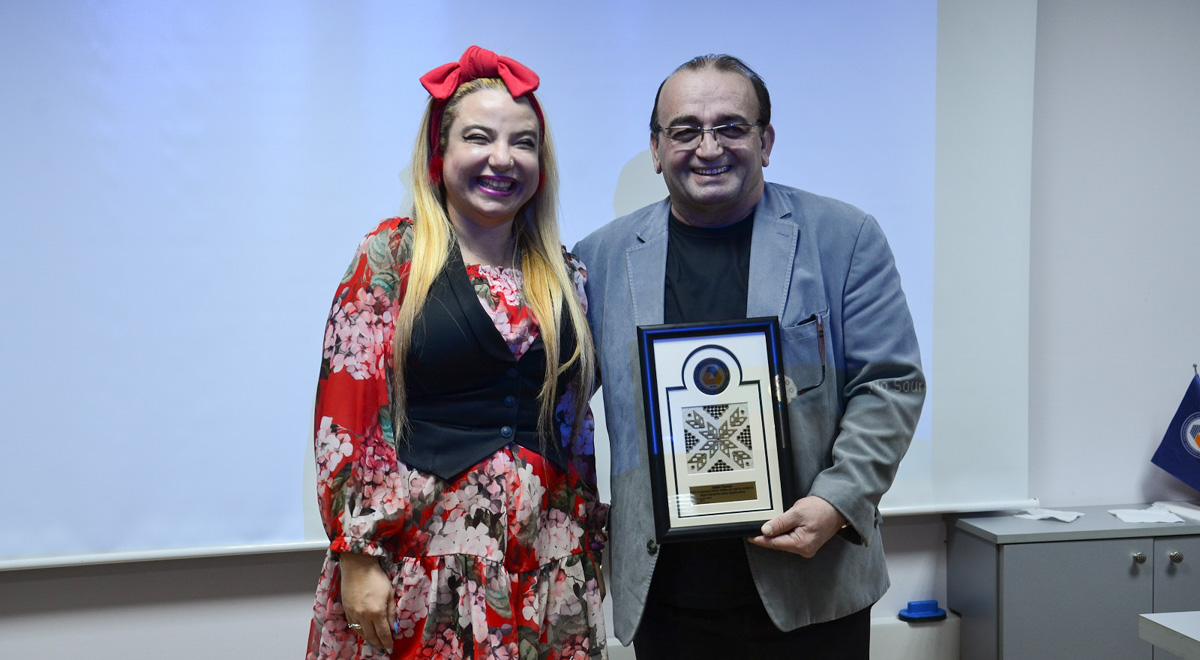 The talk that continued with the demonstration and analysis of advertisements created by Tuncer ended after a question and answer session. At the end of the talk Tuncer was handed a traditional Cypriot Lefkara frame in appreciation for his participation.