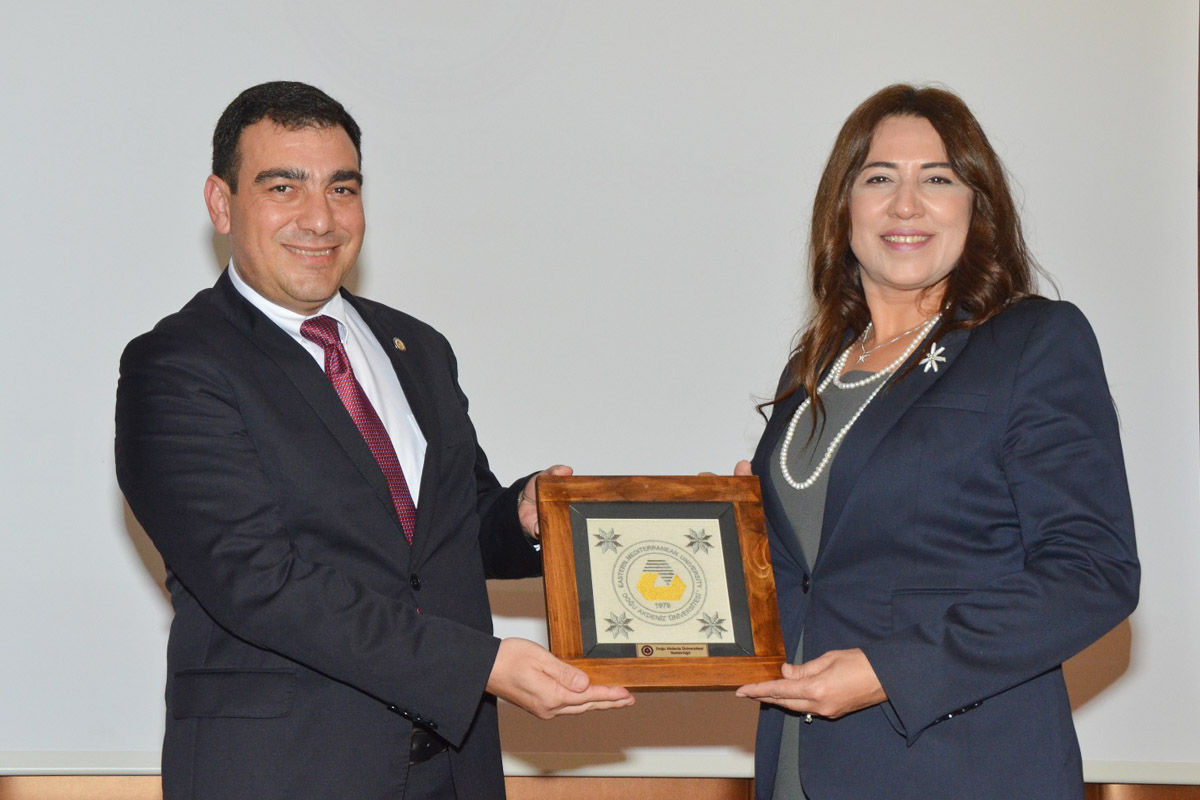 During the organisation, EMU graduates President of Antalya Bar Association Polat Balkan, Commerce District Director Seval Yasak Dizerkonca, Civil Constructors Association Deniz Karataş, Mustafa Çağlar, Hüseyin Dinç and Emre Kurtdemir delivered speeches in which they shared their memories in EMU. At the end of the event, EMU Vice Rector for International Affairs and Promotion Prof. Dr. Cem Tanova and Director of EMU Alumni Communications and Career Research Directorate Derviş Ekşici presented lefkara frames to former Nairobi Ambassador of Turkey, Representative of Turkey Ministry of Internal Affairs Hüseyin Avni Aksoy, Antalya District Commerce Director Seval Yasak Dizerkonca, Antalya Bar Association Chair Polat Balkan, Antalya Constructors’ Association Chair, Deniz Karataş and TRNC Ministry of Tourism Antalya Representative Habibe Elbasan.