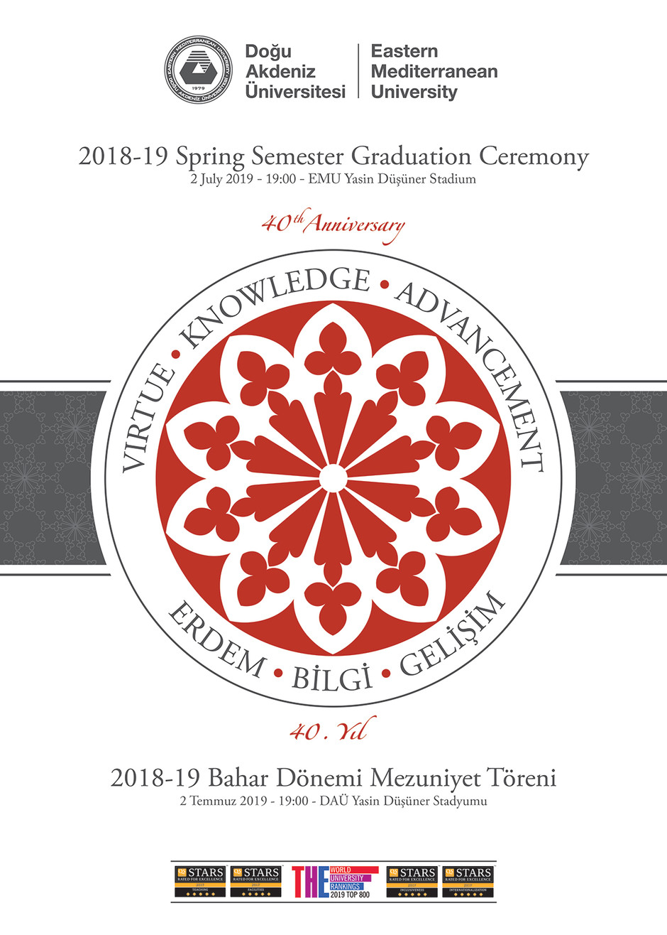 TRNC Minister of National Education and Culture Nazım Çavuşoğlu stated: “We are proud to be at the graduation ceremony taking place during the 40th year of our university which we see as the apple of our eye. What you have learned at EMU which was established 40 years ago by people of our country and is currently a world renowned university is of top importance. We are working to ensure that TRNC meets its new goal of 150 thousand students after the previous goal of 100 thousand students has been reached.”