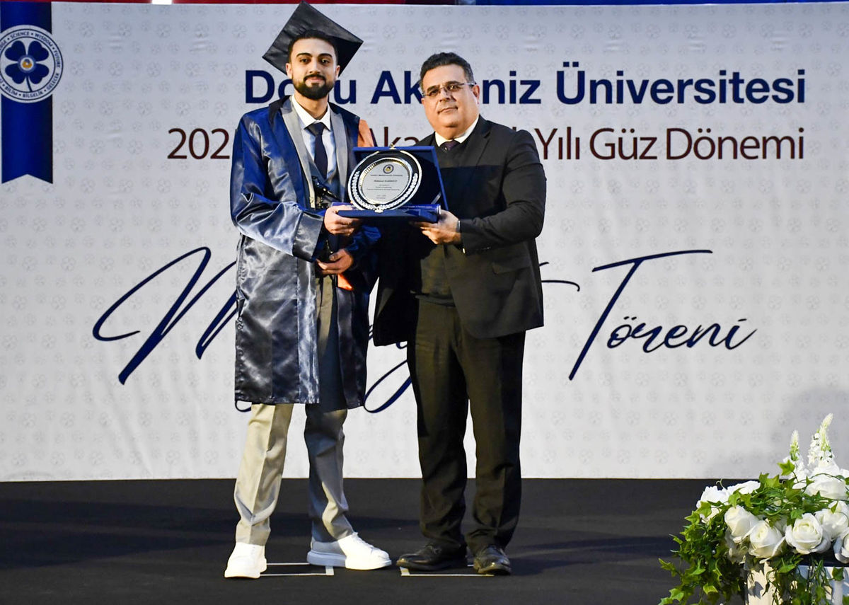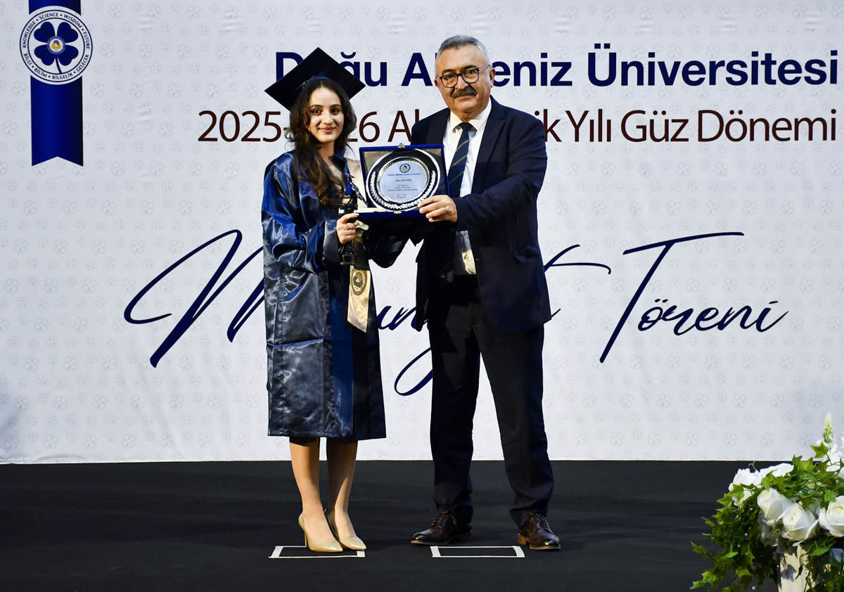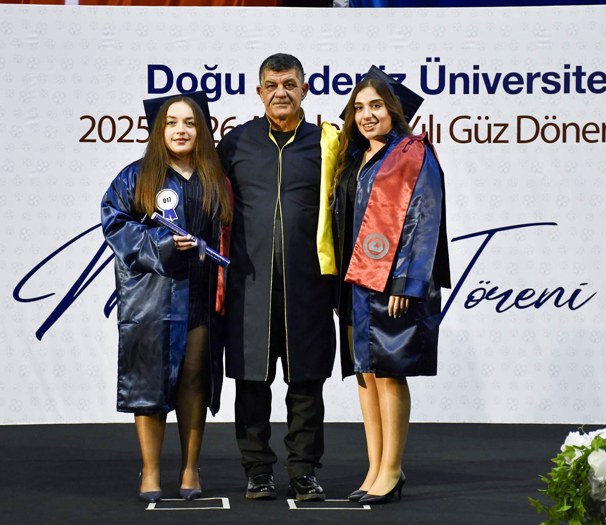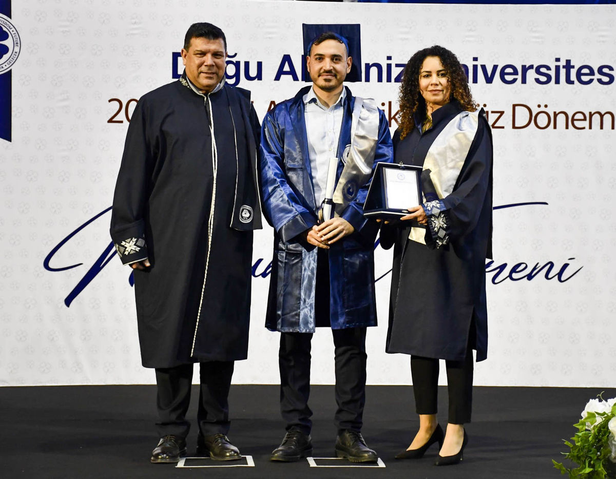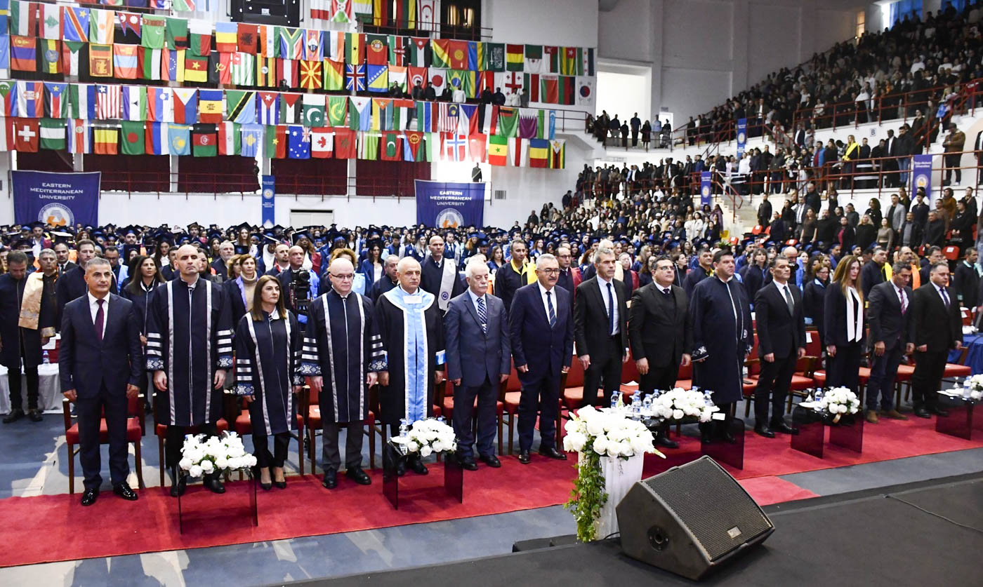 The ceremony was attended by Parliament Member Teberrüken Uluçay, Chairperson of Higher Education Planning, Supervision, Accreditation and Coordination Council (YÖDAK) Prof. Dr. Aykut Hocanın, Bayrak Radio Television Corporation (BRTK) Board Chairperson Özdemir Tokel, YÖDAK Member Prof. Dr. Remziye Terkan, EMU Board of Trustees President Dr. Erdal Özcenk, EMU Rector Prof. Dr. Hasan Kılıç, Ada Kent University Rector Prof. Dr. Osman Bülent Yorulmaz, Girne University Vice Rector Prof. Dr. Gökmen Dağlı, Board of Trustees Member İsmail Güneş Güneşoğlu, EMU Vice Rectors Prof. Dr. Osman M. Karatepe, Prof. Dr. Sonuç Zorlu, and Prof. Dr. Ali Öztüren, as well as EMU Secretary General Derviş Ekşici, along with university representatives, academics, students, and their families.