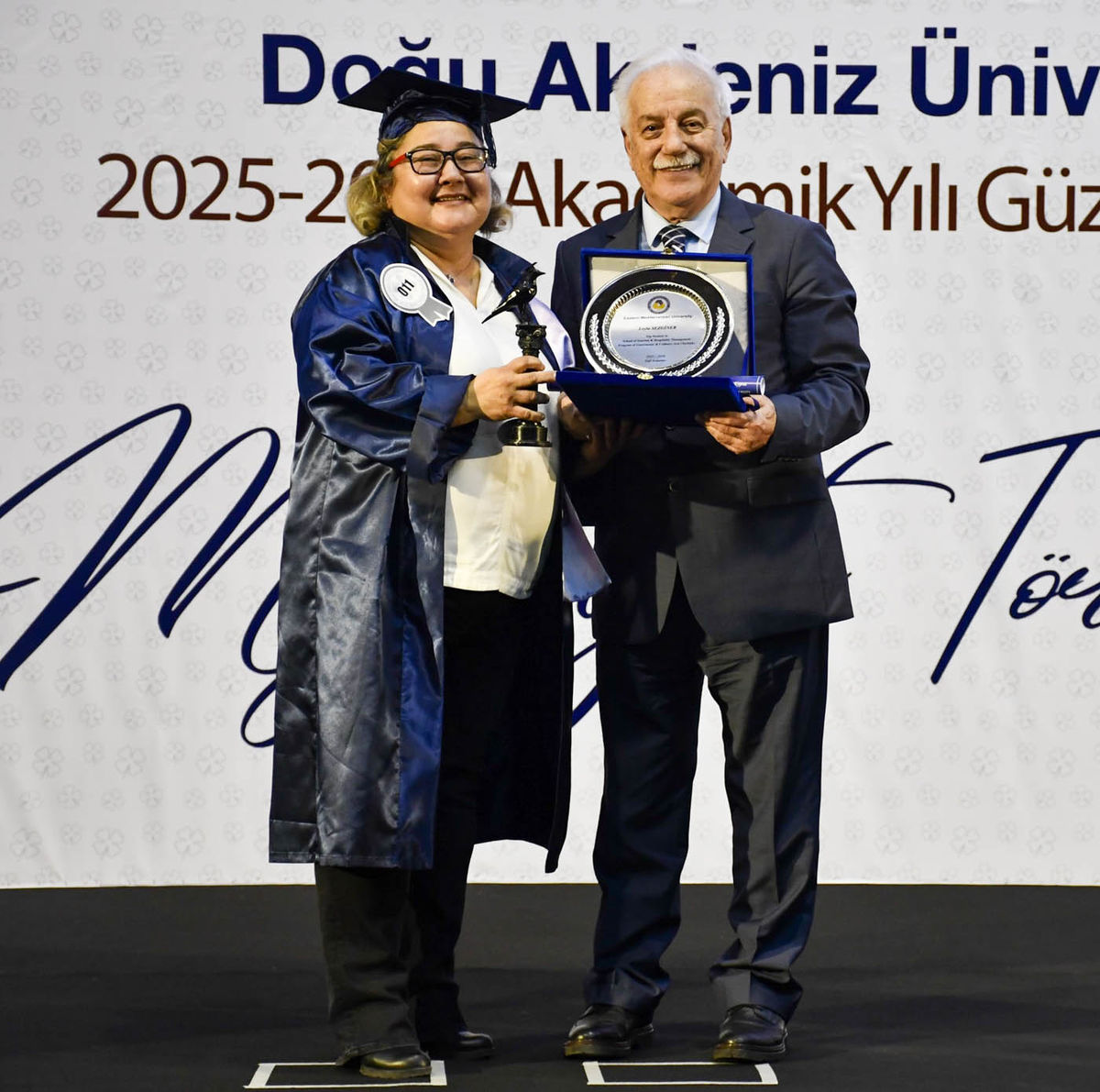 Following the speeches, diplomas and awards were presented to the top graduates of faculties and departments by protocol members. The program proceeded with the presentation of diplomas to postgraduate graduates and awards to doctoral thesis supervisors, followed by the presentation of diplomas to undergraduate and associate degree graduates. The ceremony concluded with a celebratory cap toss after a countdown led by Rector Prof. Dr. Hasan Kılıç and the Vice Rectors.