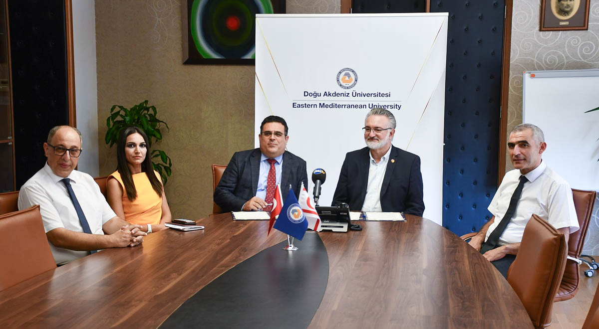 A Student Scholarship Agreement was signed between EMU and Cyprus EVKAF Foundation on Monday, 17 August 2020, at 3:30 p.m. at Aykut Hocanın's office. Among those present at the signing ceremony were EMU Rector Prof. Dr. Aykut Hocanın, EVKAF Foundation General Director Prof. Dr. İbrahim F. Benter, EMU Vice Rector for Student Affairs Prof. Dr. Hüseyin Aktuğlu, Vice Rector for Social and Cultural Affairs Assoc. Prof. Dr. Deniz İşçioğlu, and Vice Rector for Administrative and Technical Affairs Assoc. Prof. Dr. Serhan Şensoy.