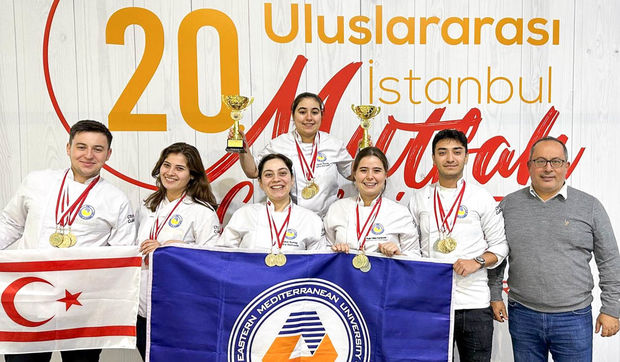 Eastern Mediterranean University (EMU) Faculty of Tourism, Gastronomy and Culinary Arts Department students and Tower Training and Practice Restaurant team participated in the 20th International Istanbul Gastronomy Days Competition organized by Cooks and Chefs Federation of Turkey (TASFED) on 13-16 December, 2023 in Istanbul. The EMU students and team won the biggest prize titled the Grand Prix award along with the Turkish Golden Chef of the Year cup and total of 24 medals; 15 golden, 7 silver and, 2 bronze.