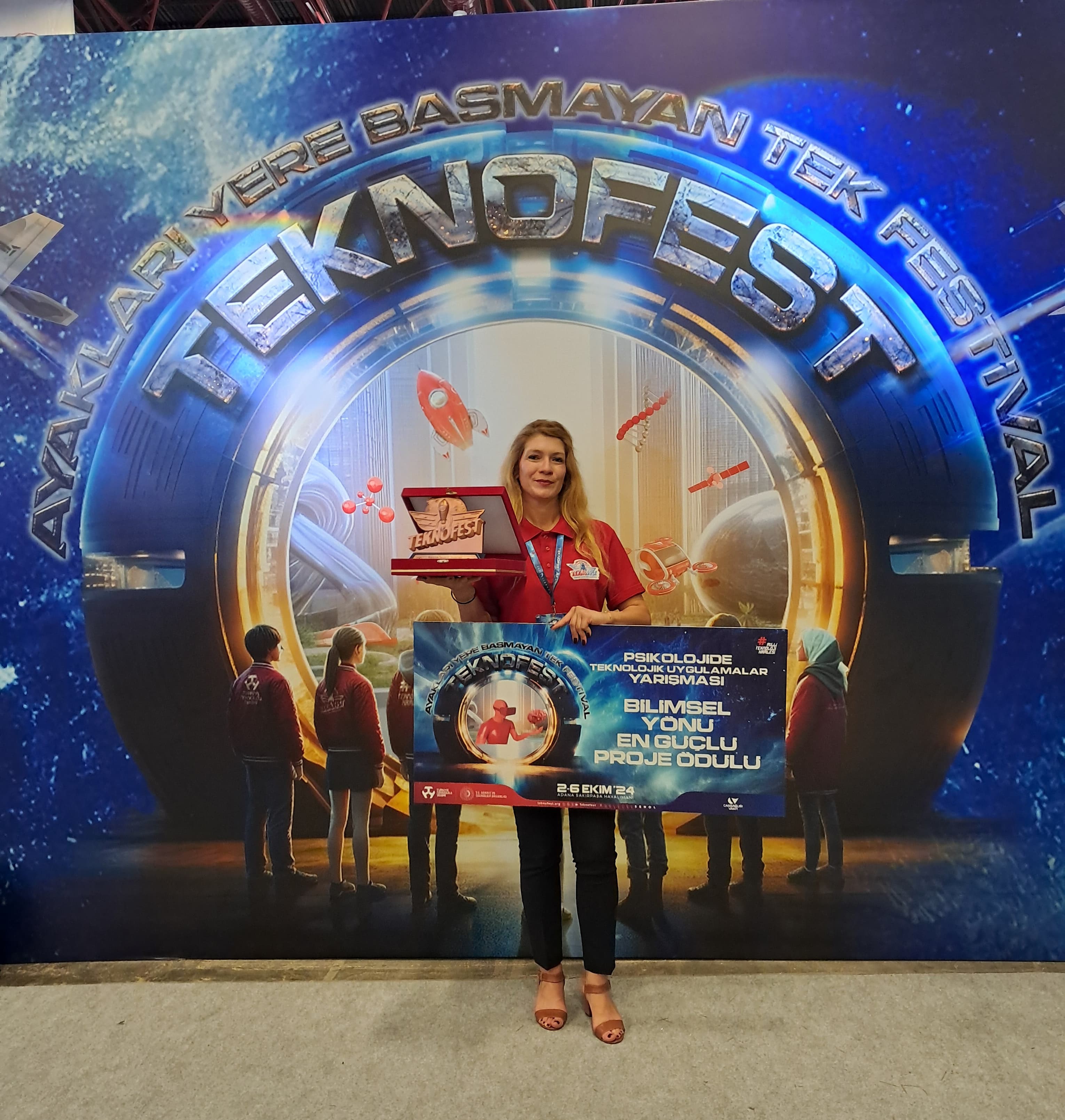 Eastern Mediterranean University (EMU), Faculty of Education, Department of Educational Sciences, Guidance and Psychological Counselling Program 2011 graduate Sena Sinem Aydın participated in the finals of Teknofest, the biggest technology festival of Türkiye. ‘Emotion Hunters’ team led by Aydın received the “Project with the Strongest Scientific Aspect” award in the “Technologic Applications in Psychology” category.
