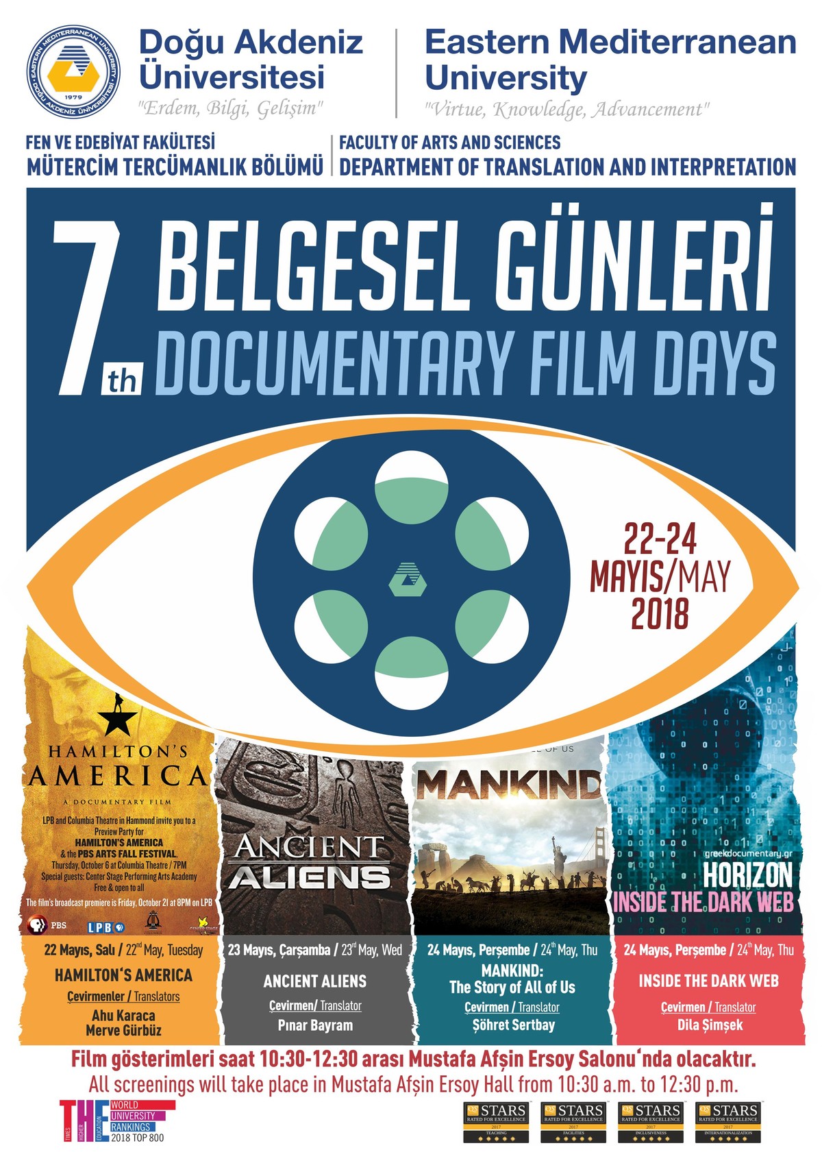 Documentaries translated into Turkish by final year students of the Eastern Mediterranean University (EMU), Faculty of Arts and Sciences, Department of Translation and Interpretation will be screened at the Mustafa Afşin Ersoy Hall on 22 May 2018.