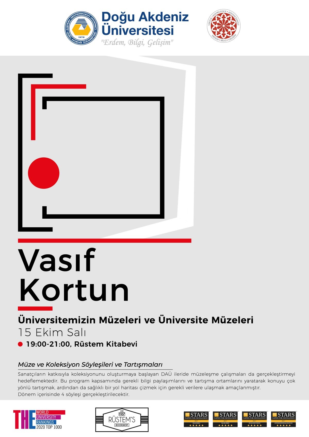 Within the scope of the events program compiled following the collaboration protocol signed between the Eastern Mediterranean University (EMU) and Rüstem Bookstore, curator, art consultant and former SALT director Vasıf Kortun will be delivering a talk titled “Museums of Our University / University Museums” on Tuesday, the 15th of October 2019. The talk is going to be delivered at the Rüştem Bookstore between 19:00 and 21:00. Vasıf Kortun has also recently been providing consultancy to the İstanbul Art and Sculpture Museum.