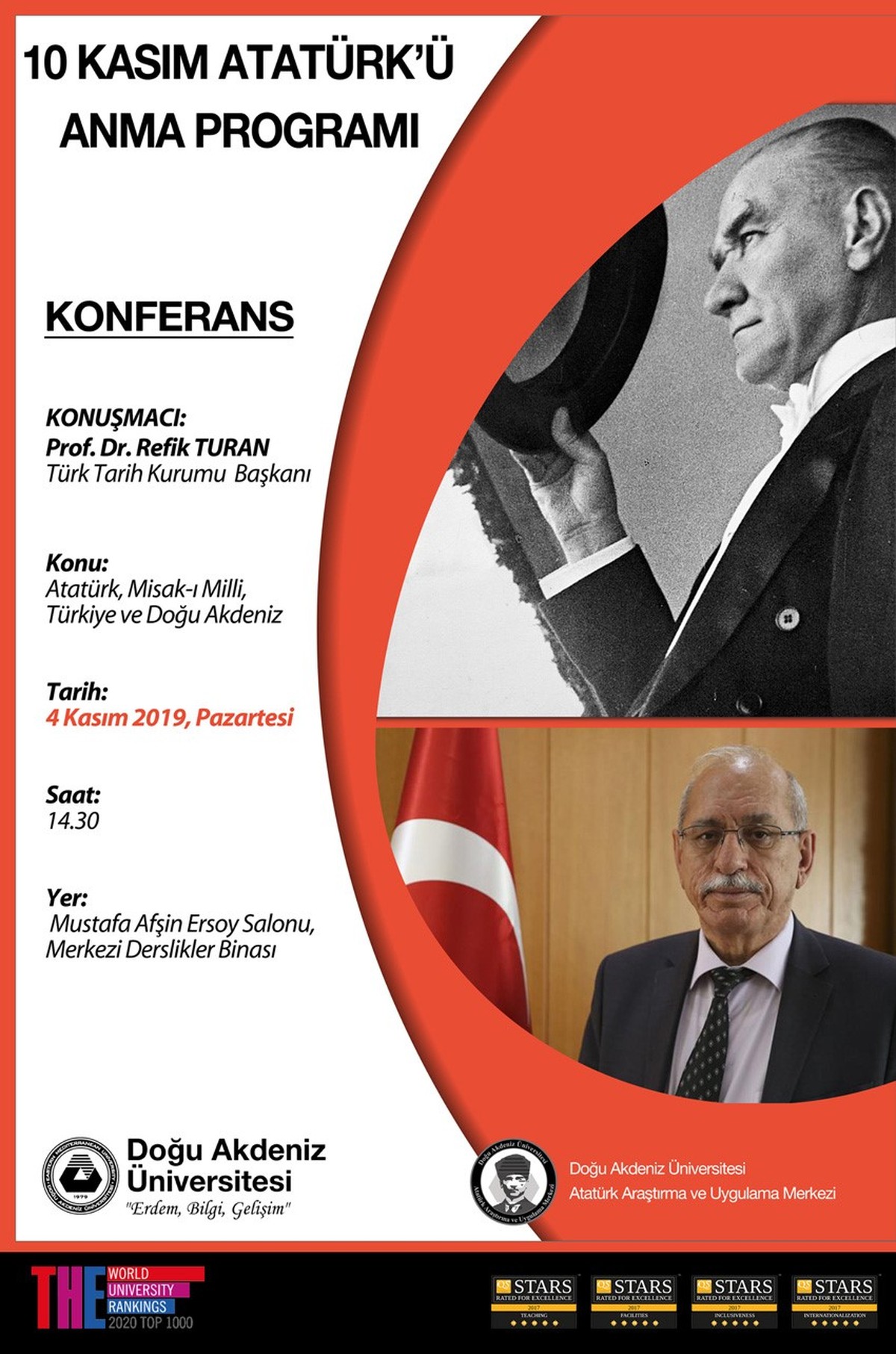Fri, 1 November 2019 13:30:00 #10 kasım#atatürk#ataum#refik turan Starts: Mon, 4 November 2019 14:30:00 Ends: Mon, 4 November 2019 17:00:00 Location: Mustafa Afşin Ersoy Hall (CLA21) Eastern Mediterranean University Eastern Mediterranean University