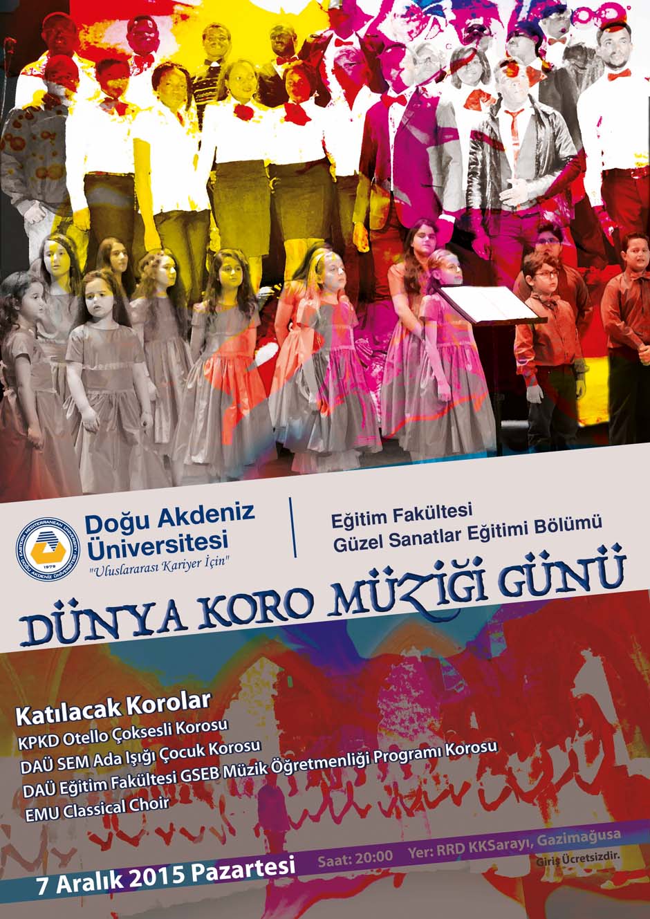 On occasion of this day, Music Teaching Program of Fine Arts Education Department (EMU) is organizing a concert to take place on December 7, 2015 at the Cultural and Congress Center (RDDKK) at 8 p.m. A number of choirs including EMU Music Teaching Program Choir , Othello Poliphonic Choir, Ada Işığı Children Choir and EMU International Choir will have performances.