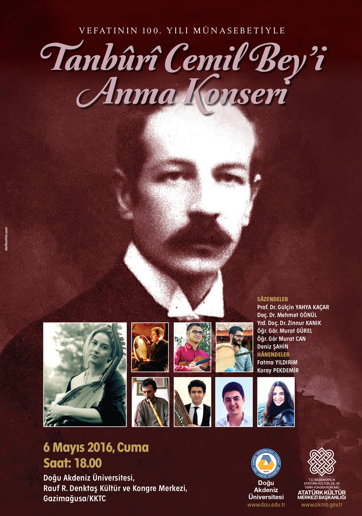 2016 is the 100th anniversary of the passing of great Turkish composer Tanbûri Cemil Bey. In this respect, UNESCO Turkey National Commission has designated 2016 as a memorial year commemorating late Tanbûri Cemil Bey.