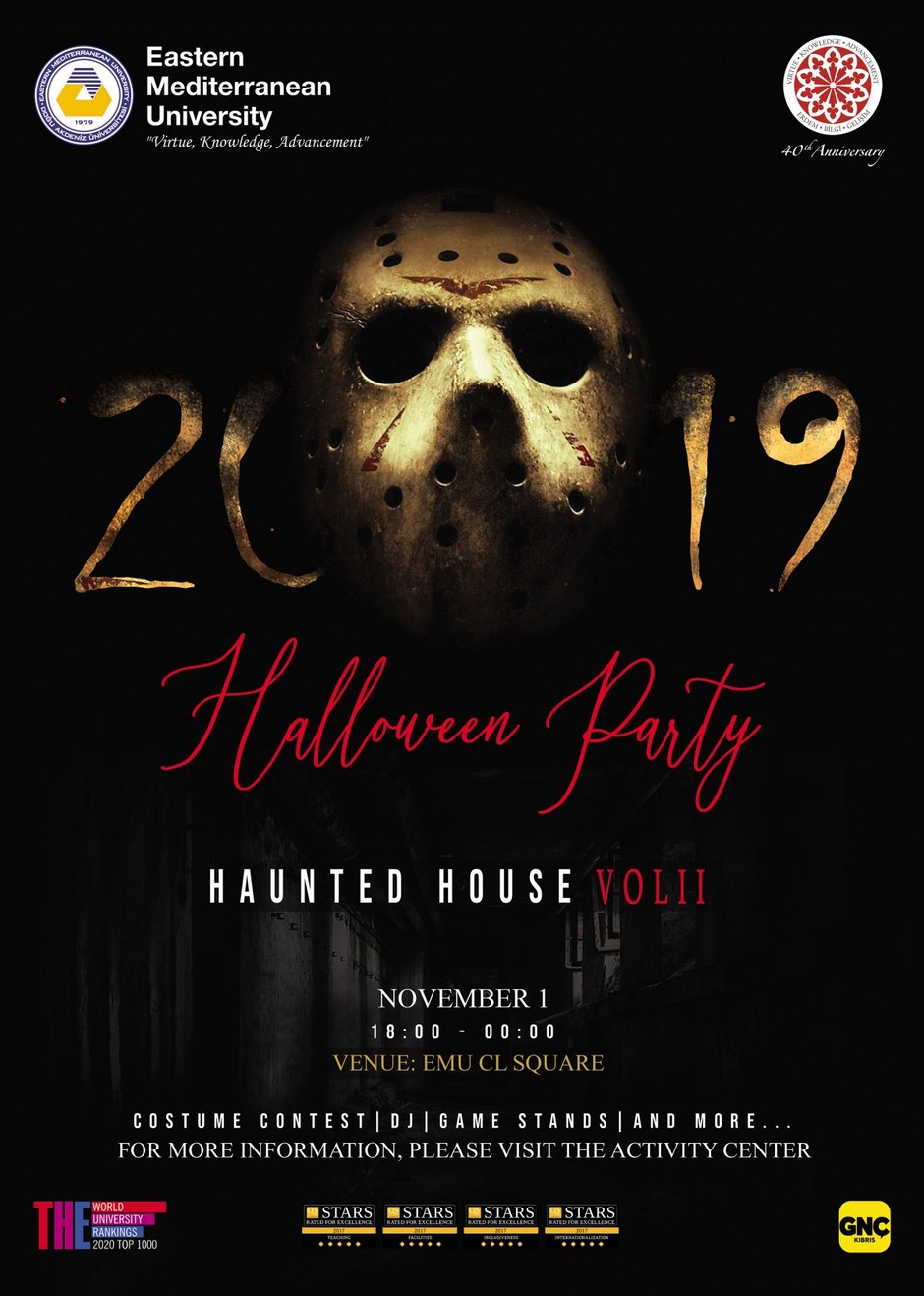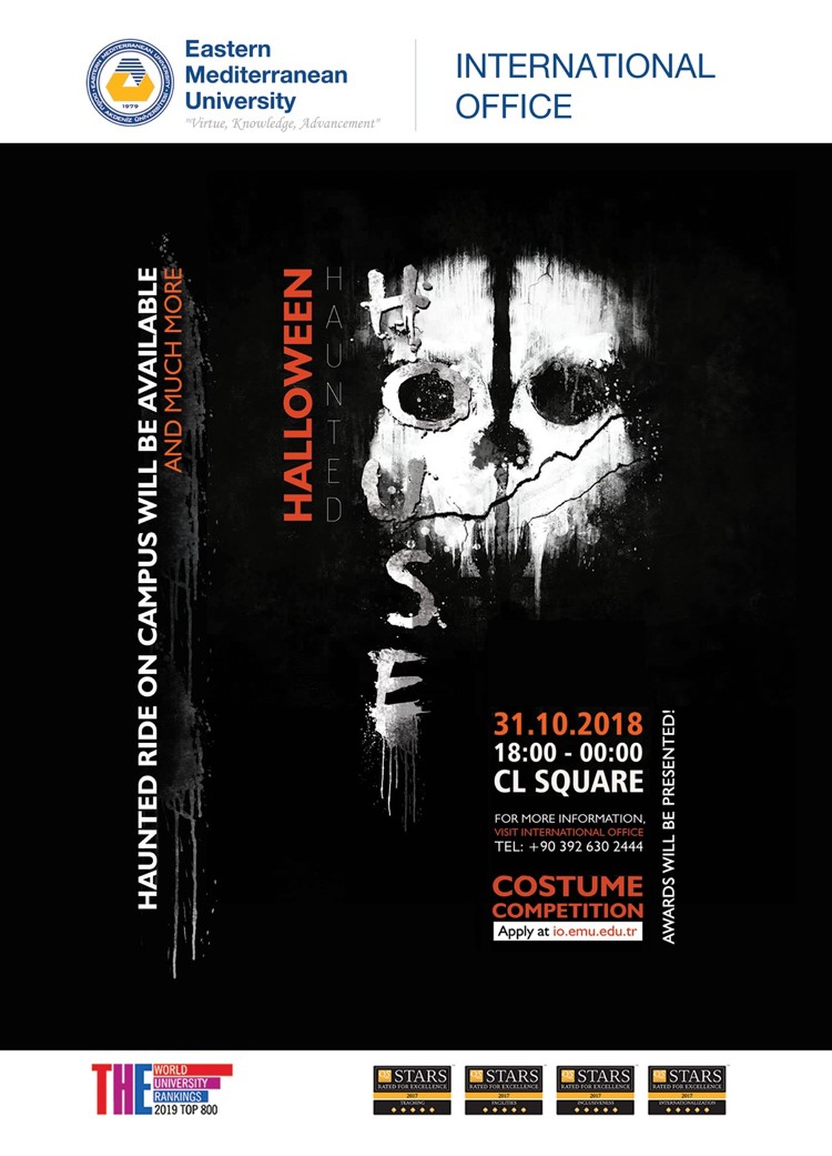 Fri, 26 October 2018 16:04:00 #cadılar bayramı#halloween Starts: Wed, 31 October 2018 18:00:00 Ends: Wed, 31 October 2018 23:59:00 Location: Central Lecture Halls (CL) Eastern Mediterranean University Eastern Mediterranean University