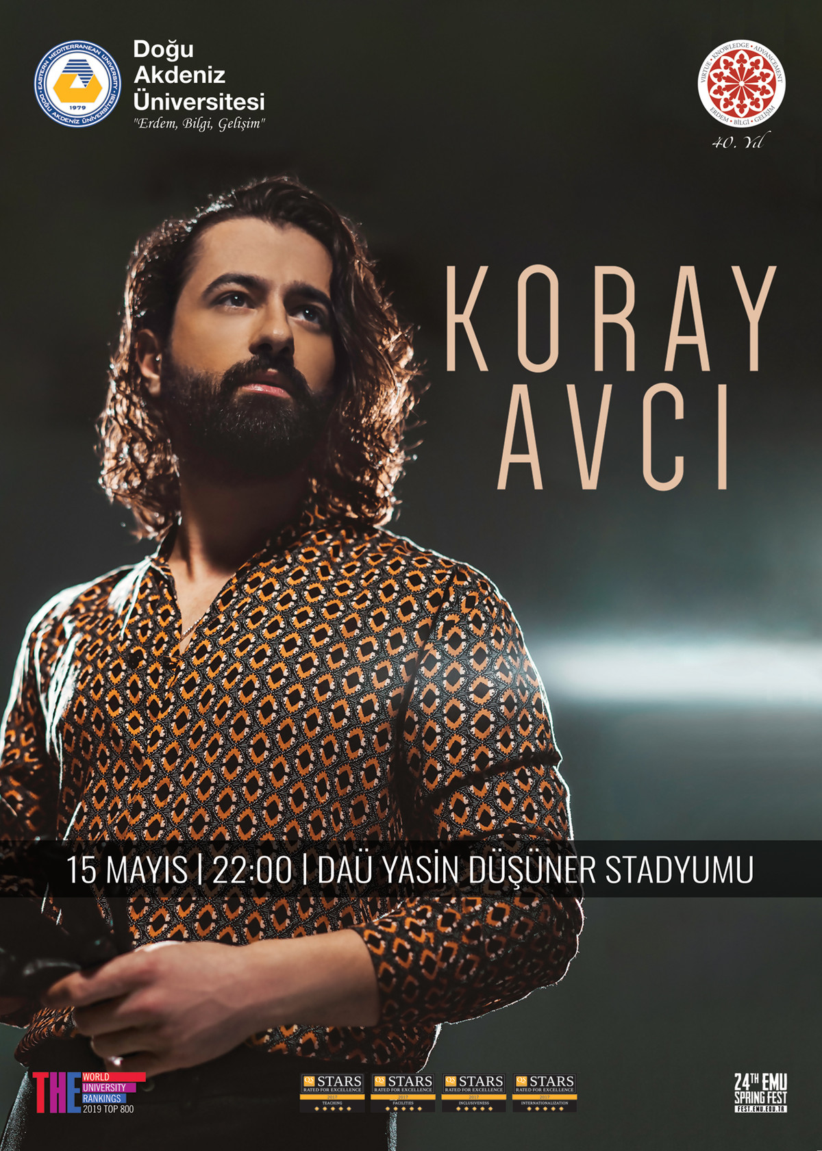 Tue, 7 May 2019 09:25:00 #koray avcı#springfest-2019 Starts: Wed, 15 May 2019 22:00:00 Ends: Wed, 15 May 2019 23:30:00 Location: EMU Stadium Eastern Mediterranean University Eastern Mediterranean University