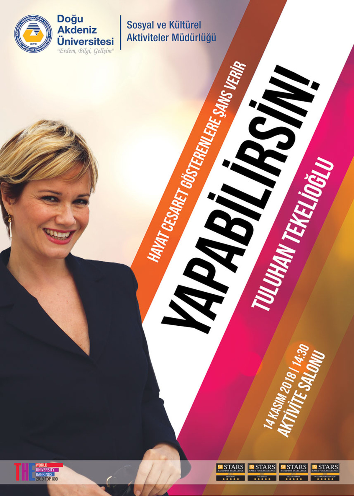 Thu, 1 November 2018 12:30:00 #tulhan tekelioğlu#tuluhan tekelioğlu Starts: Wed, 14 November 2018 14:30:00 Ends: Wed, 14 November 2018 16:30:00 Location: Social and Cultural Activities This event will be held in Turkish. Eastern Mediterranean University Eastern Mediterranean University