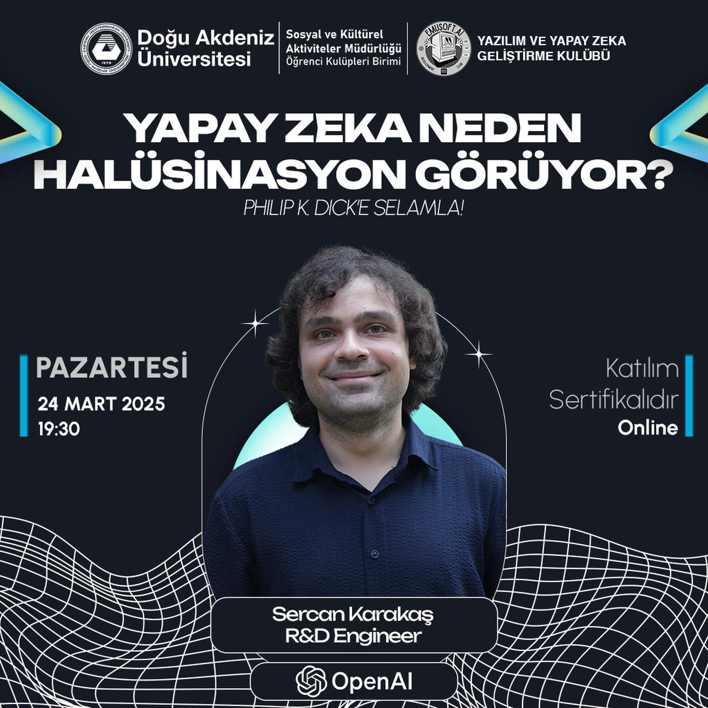 Fri, 21 March 2025 10:28:00 #openai#sercan karakaş Starts: Mon, 24 March 2025 19:30:00 Ends: Mon, 24 March 2025 21:30:00 Location: Online Event Participant Form Eastern Mediterranean University Eastern Mediterranean University