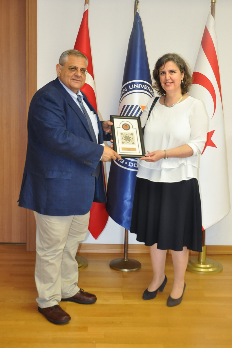 Prior to the meeting, Deniz Sungurlu, Marc Khayat, Aytaç Çerkez and Yusuf Küçük paid a visit to EMU Rector Prof. Dr. Osam. Thanking Prof. Dr. Osam for his support, the visiting group shared information about Cisco Networking Academy. At the end of the visit, Rector Prof. Dr. Osam presented Sungurlu ve Khayat a gift made of traditional Lefkara lace. Vice Rector Prof. Dr. Özgür Eren was also present at the meeting.