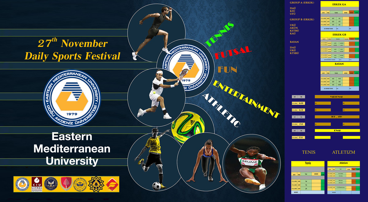 The Eastern Mediterranean University (EMU) is preparing to host the Sports Festival that will feature universities from the Turkish Republic of Northern Cyprus (TRNC). The aim of the Sports Festival is to strengthen university communication and collaboration via sporting activities. The Sports Festival will be taking place on Sunday the 27th of November 2016, between 09:00-17:00