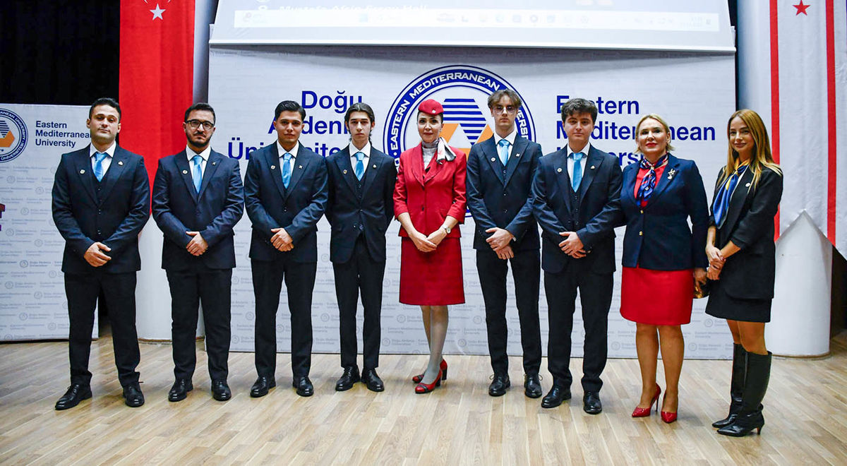 The said ceremony was attended by EMU Rector Prof. Dr. Hasan Kılıç, Vice Rectors Prof. Dr. Osman M. Karatepe, Prof. Dr. Ali Öztüren and Prof. Dr. Sonuç Zorlu, EMU General Secretary Derviş Ekşici, Acting Dean of EMU Faculty of Tourism Assist. Prof. Dr. İlkay Yorgancı, Turkish Airlines (THY) Cabin Supervisor Gülnur Meziyene, Tourism Faculty members, students and their families.
