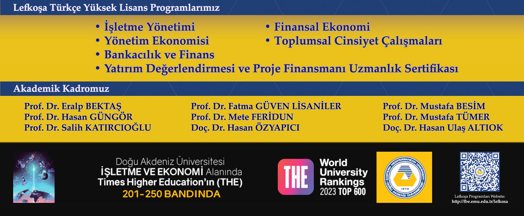 EMU is the only university from the Turkish Republic of Northern Cyprus (TRNC) to be listed in the field of Business and Economics in the Field Rankings published by Times Higher Education (THE), the publisher of university rankings that are widely referenced in the world. It is worth mentioning that amongst the universities of Cyprus and the Republic of Turkey, EMU appears within the second band. In the said list featuring 13 universities from the Republic of Turkey, Bilkent University and Koç University have been listed in the 176-200 band and share the first place, while EMU, which is in the 201-250 band, appears within the second place. Sabancı University, which is in the 301-400 band, has been listed in the third place. EMU Faculty of Business and Economics, which is among the top in the world in the field of Business and Economics, awaits its new students for the Faculty’s master’s programs in Nicosia.