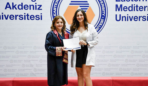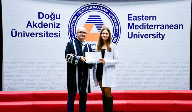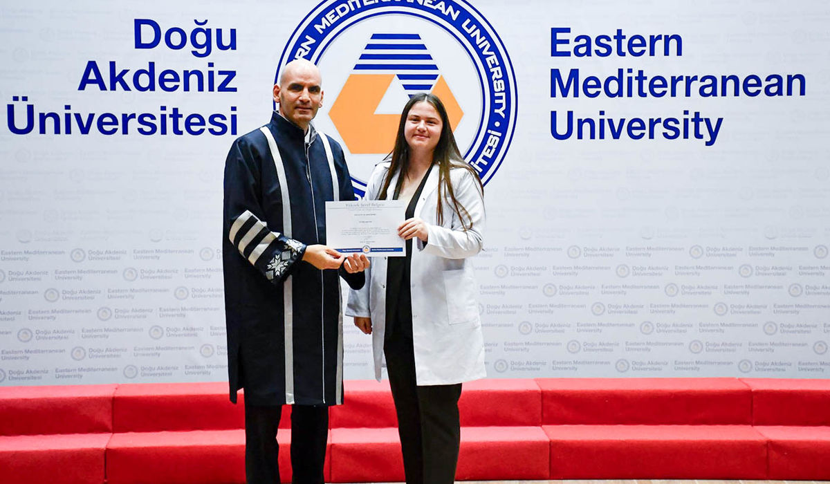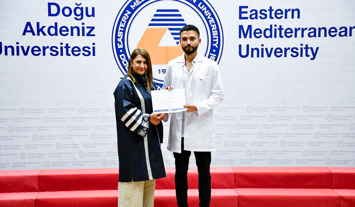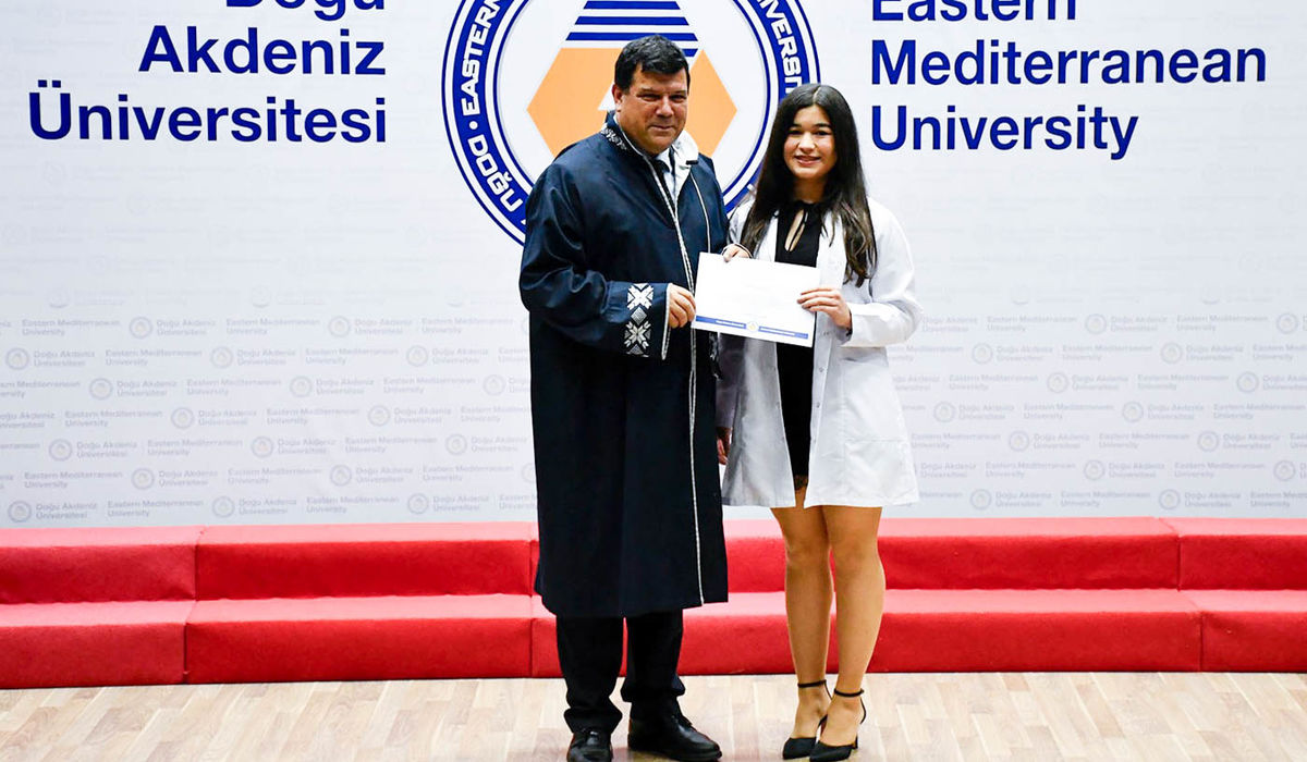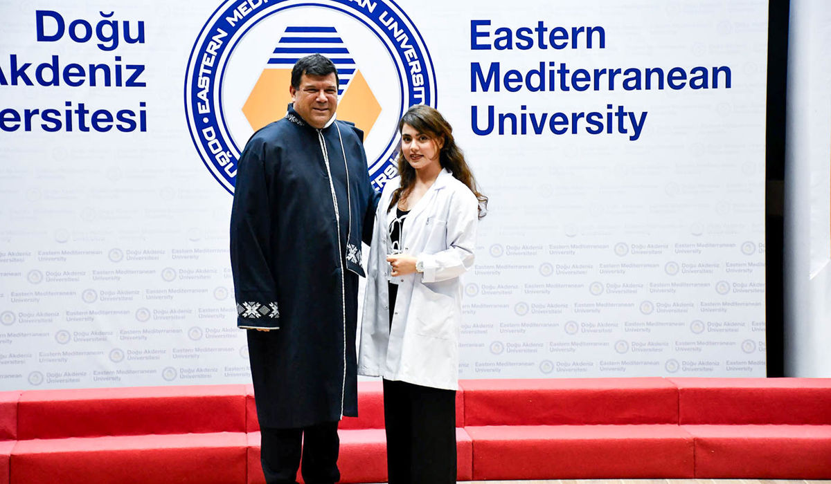 The ceremony was attended by EMU Rector Prof. Dr. Hasan Kılıç, EMU Vice Rectors Prof. Dr. Osman M. Karatepe,Prof. Dr. Ali Öztüren and Prof. Dr. Sonuç Zorlu, EMU General Secretary Derviş Ekşici, Chair of the Chamber of Turkish Cypriot Dentists Turhan Ulutekin, EMU Faculty of Dentistry Dean Prof. Dr. Hikmet Solak, Health Sciences University Faculty of Dentistry Dean Prof. Dr. Simel Ayyıldız, EMU Health Sciences Faculty Dean Dr. Mehtap Malkoç, EMU Faculty of Pharmacy Dean Prof. Dr. Ozan Gülcan, EMU Dr. Fazıl Küçük Medicine Faculty Acting Dean Assoc. Prof. Dr. Nilüfer Gözoğlu, many academics, students and their families.
