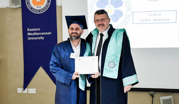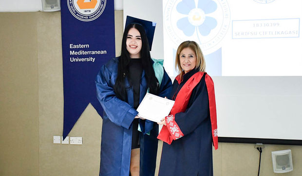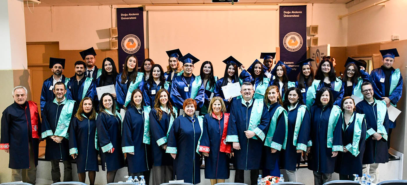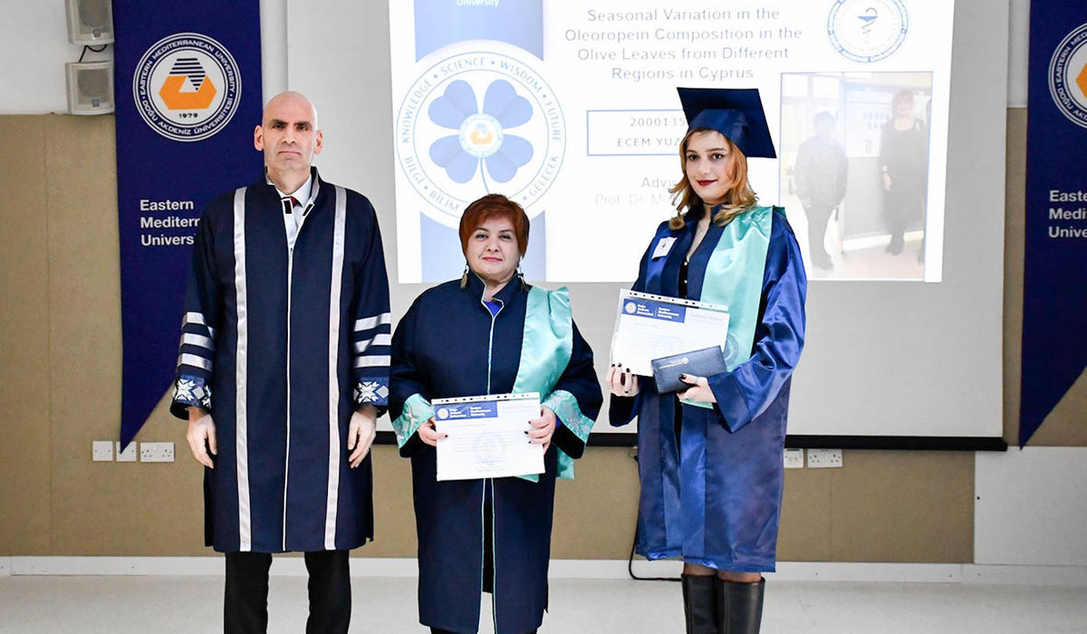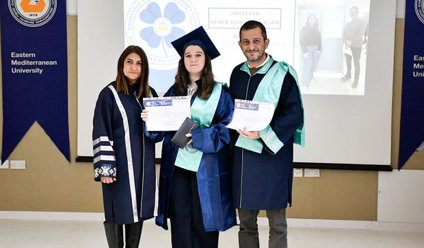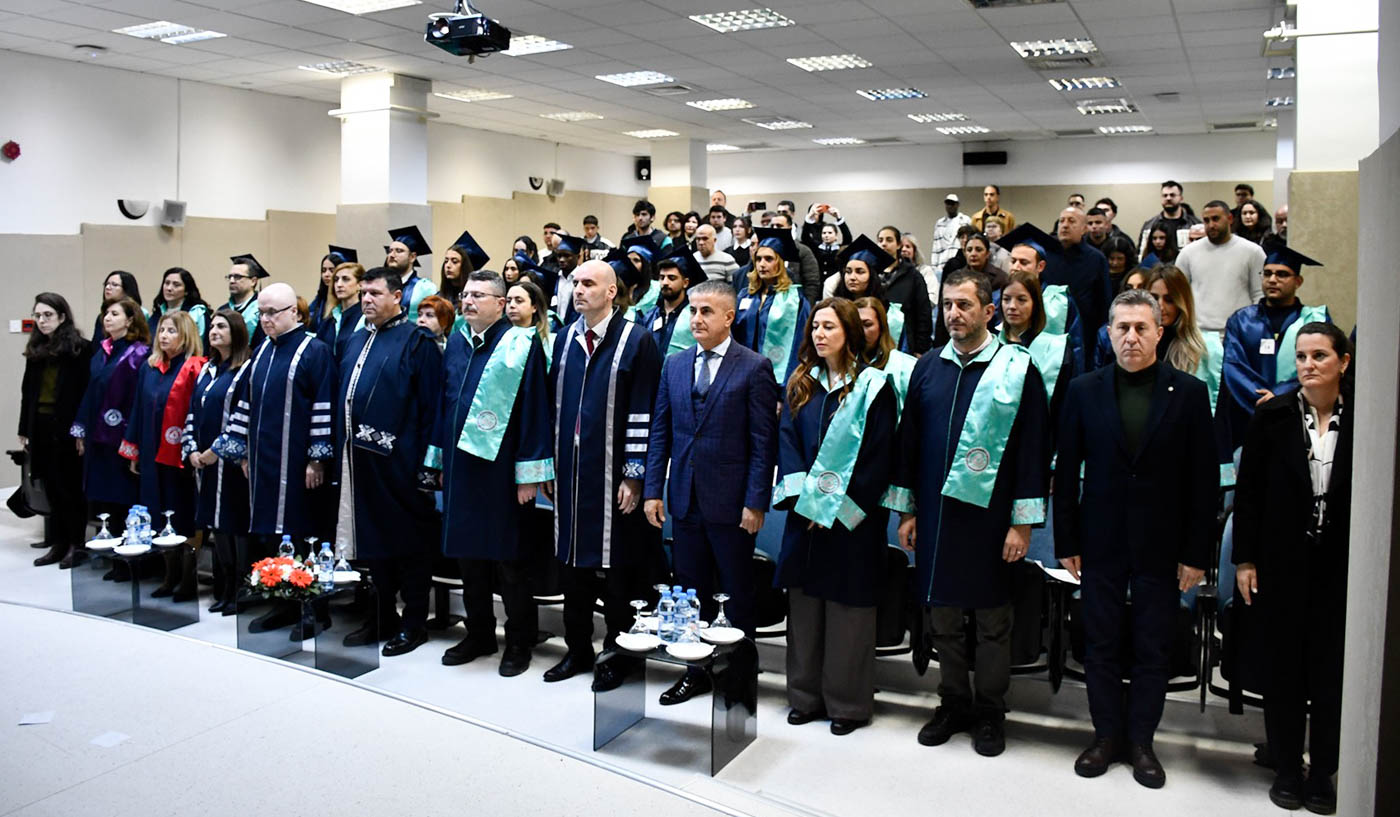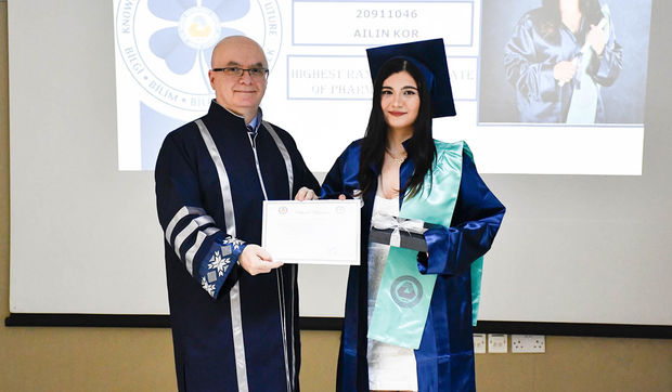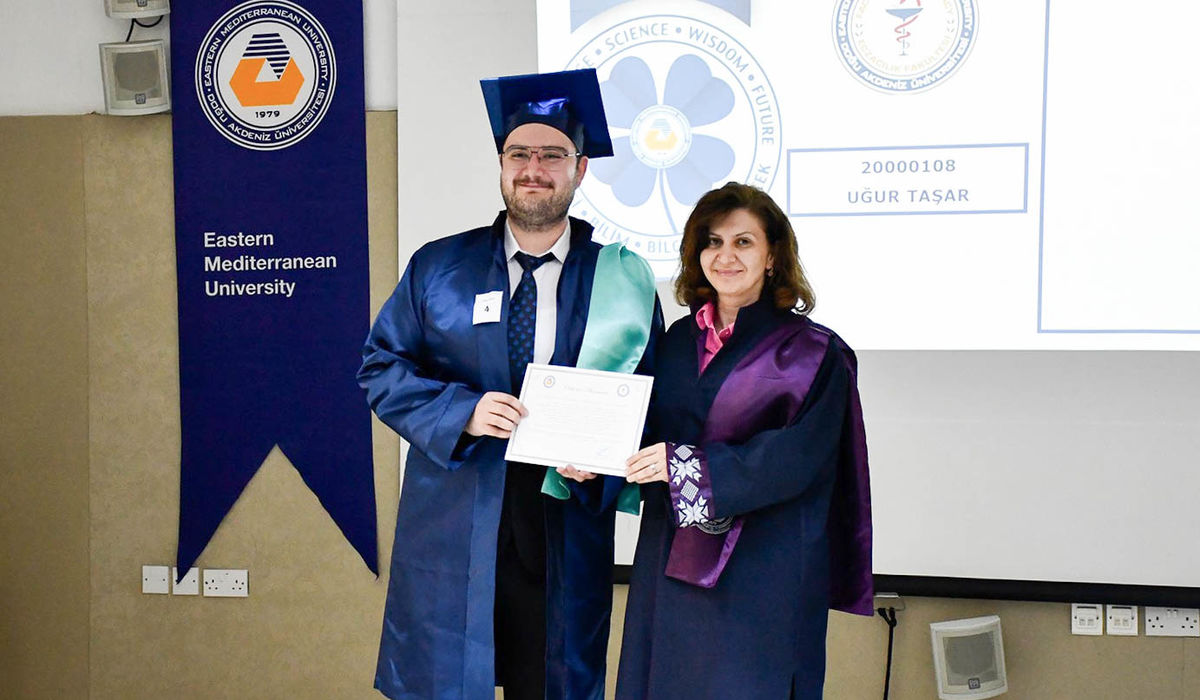 The ceremony commenced with observation of a Moment of Silence and National Anthem, followed by a musical performance by EMU Faculty of Pharmacy student Şahnaz Gökel and musician Yüksel Günay Bilgeer. Present at the ceremony were the EMU Rector Prof. Dr. Hasan Kılıç, EMU Vice Rectors Prof. Dr. Osman M. Karatepe, Prof. Dr. Sonuç Zorlu and Prof. Dr. Ali Öztüren, EMU General Secretary Derviş Ekşici, Dean of the Faculty of Pharmacy Prof. Dr. Hayrettin Ozan Gülcan, Dean of EMU Faculty of Health Sciences Prof. Dr. Mehtap Malkoç, Dean of EMU Dr. Fazıl Küçük Medicine Faculty Prof. Dr. Nilüfer Güzoğlu, the Vice Deans of Faculty of Pharmacy, Department Chairs, academics and graduates.