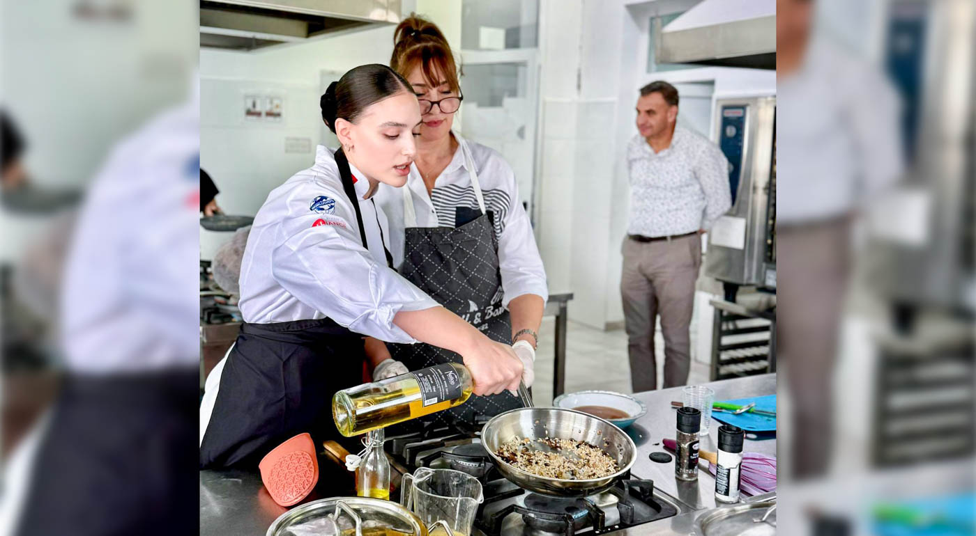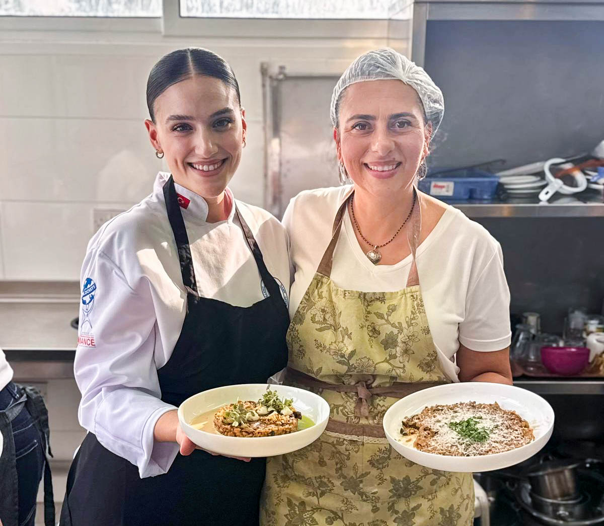The said workshop was led by EMU Department of Gastronomy and Culinary Arts academic staff member Kardelen Üntaç and, EMU Department of Tourism Management graduate and Atatürk Vocational High School Tourism Teacher Ahmet Varoğlu. Participants were guided on how to achieve the ideal risotto consistency, use stock correctly, and highlight the flavour of porcini mushrooms in a balanced way.