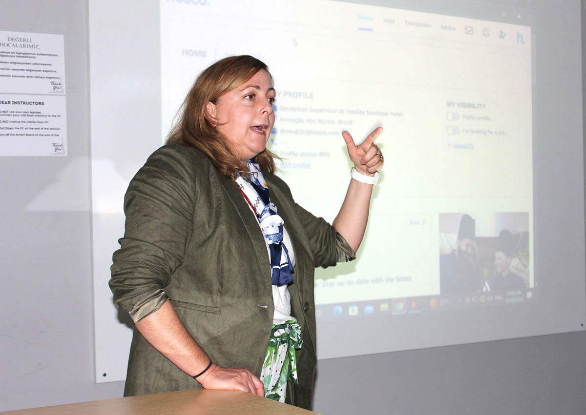 On the other hand, the second important event organized by the EMU Faculty of Tourism was hosting Specialist Career Consultant Francesca Tagliavini from HOSCO, one of the leading career platforms in tourism and hospitality sector. Attending the seminar event as a guest speaker, Tagliavini explained the students various key points in job application; such as, effective CV writing and interview strategies. Guiding the students on how to easily reach career opportunities within the sector, Tagliavini also shared some tips on accelerating the job search process using the features offered by the HOSCO platform.