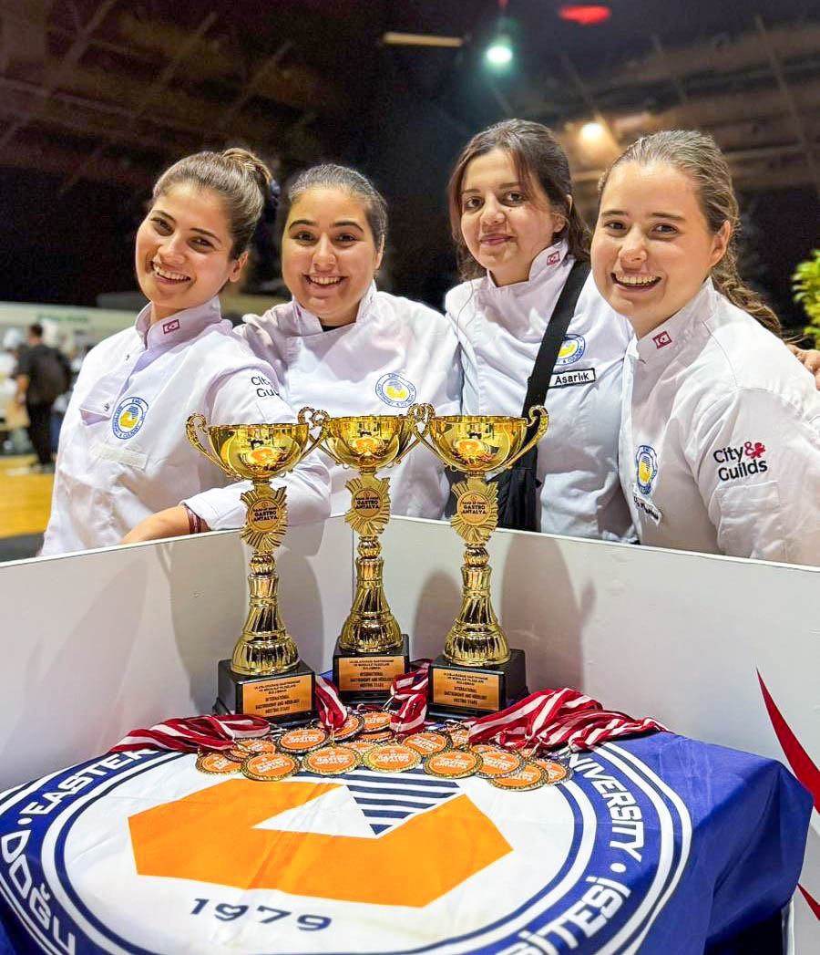 Bringing together culinary professionals around the world, the event was also attended by EMU Faculty of Tourism, Department of Gastronomy and Culinary Arts’ senior instructor Fatma Öztunç and, program students Elif Asarlık, Nujin Dilba Karakulak and Günseli Kafa. EMU Gastronomy and Culinary Arts Department once again reaffirmed the quality of its academic education and its pioneering role in culinary arts training by winning several golden, silver and bronze medals in both individual and team categories. Having the opportunity to showcase their modern culinary techniques, creativity, and professional competencies on such a prestigious platform serves as a highly valuable reference for the students’ future careers.