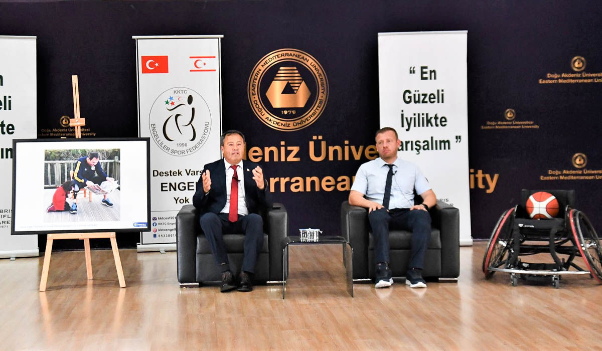 Aiming to reach a stronger future all together with culture, sports, and art, the first event titled “Integrated Life of Disabled Individuals with Society: Art and Sports” took place at 11:00 at EMU Activity Center, organized by the Atatürk Ideology Club and the Special Education Club, featuring Ahmet Akdeniz, the President of the TRNC Presidential Office, Disabled Persons Committee.