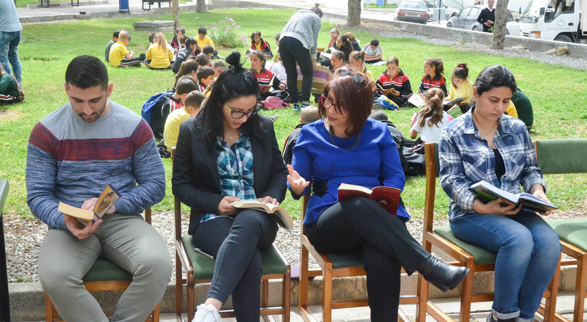 Doğu Akdeniz Üniversitesi (DAÜ) Özay Oral Kütüphanesi, 54. Kütüphane Haftası’nı çeşitli etkinliklerle kutlamayı sürdürüyor. “Kıbrıs Evlerinde Geçmişin İzleri – 2” adlı kişisel fotoğraf sergisi ile başlayan 54. Kütüphane Haftası kutlamaları, 28 Mart 2018 Çarşamba günü, 11:30 – 12:00 saatleri arasında, DAÜ Özay Oral Kütüphanesi Bahçesi’nde yapılan kitap okuma etkinliği ile devam etti. DAÜ Özay Oral Kütüphanesi ile Kıbrıs Türk Kütüphaneciler Derneği (KTKD) iş birliğinde, “Okumak Değiştirir” sloganı ile Türkiye ve KKTC’de aynı gün ve aynı saatte düzenlenen kitap okuma etkinliğinin bu yılki misafiri İskele Şehit İlker Karter İlkokulu öğrencileri ve öğretmenleri oldu.