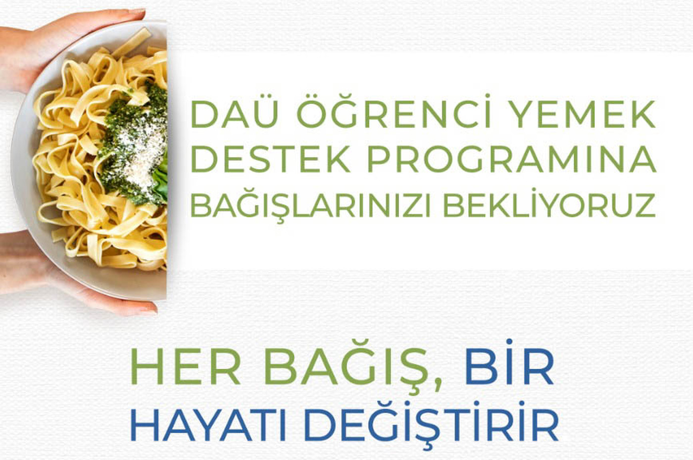 Bu anlayışla hayata geçirilen Öğrenci Yemek Destek Programı (ÖYDP), siz değerli DAÜ Ailesi ve gönüllü bağışçılarımızın katkıları sayesinde anlam kazanmakta ve büyümektedir.