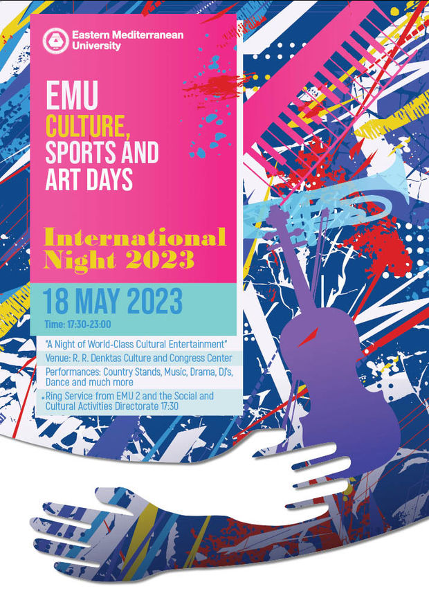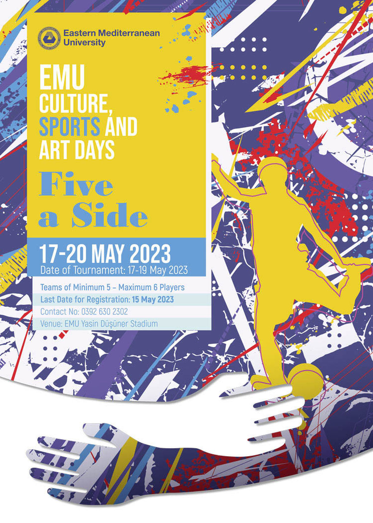 Doğu Akdeniz Üniversitesi (DAÜ) Türkiye Cumhuriyeti’nde yaşanan ve birçok ili etkileyen deprem felaketinde gerek Türkiye’de gerekse Kuzey Kıbrıs Türk Cumhuriyeti’nde (KKTC) yaşanan derin acıların yaralarını kültür, spor ve sanat etkinlikleri ile sarmaya çalışacak. Bu bağlamda DAÜ Sosyal ve Kültürel Aktiviteler Müdürlüğü ile DAÜ Spor İşleri Müdürlüğü tarafından 17-20 Mayıs 2023 tarihleri arasında DAÜ Kampüsü’nde “DAÜ Kültür, Spor ve Sanat Günleri” adı altında spor müsabakaları, sanat atölyeleri, söyleşiler, 19 Mayıs Yürüyüşü, Uluslararası Öğrenci Aktivite ve Öğrenci Cemiyetleri etkinlikleri ve tiyatro gösterisi düzenlenecek. Kültür, Spor ve Sanat Günleri kapsamında DAÜ Yasin Düşüner Stadyumu çevresinde Öğrenci Kulüpleri, Uluslararası Öğrenci Aktivite ve Öğrenci Cemiyetleri ile yiyecek ve içecek standları da yer alacak.