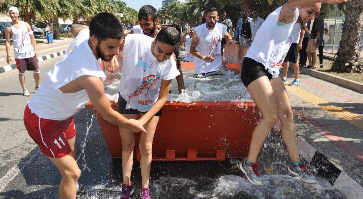 Doğu Akdeniz Üniversitesi (DAÜ) Spor İşleri Müdürlüğü tarafından DAÜ 22. Bahar Festivali kapsamında düzenlenen EMUATHLON yarışması, nefesleri kesti. 8 kişilik takımların toplamda 17 adet engeli geçip en kısa sürede yarışı bitiren takımın şampiyon olduğu yarışmada, yarışmacılar ve izleyiciler çok keyifli ve heyecanlı dakikalar geçirdi. Atlama, tırmanma, çamurda sürünme, stadyum basamaklarını üç kez çıkıp inme gibi birçok engeli aşmak zorunda kalan sporcular, bitiş noktasına varabilmek ve şampiyon olabilmek için ter döktüler.