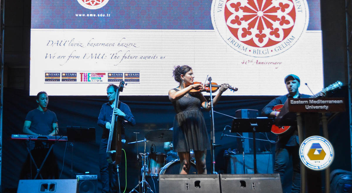 Resepsiyonda konser veren Bossa Nova Jazz Müzik Grubu, performanslarıyla DAÜ’lü genç mezunlara ve ailelerine unutulmaz bir gece yaşattı. Mezunlar, aileleri ve arkadaşları ile birlikte kendilerini jazz müziğin hareketli ezgilerine kaptırarak, doyasıya dans etti. Gecede, DAÜ Rektörü Prof. Dr. Necdet Osam ile Öğrenci İşleri’nden Sorumlu Rektör Yardımcısı Prof. Dr. Sonuç Zorlu Oğurlu tarafından 40. Yıl pastası da kesildi.