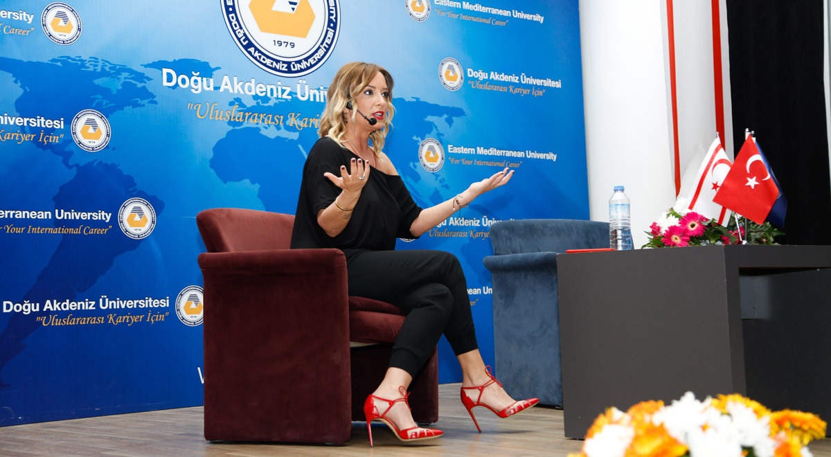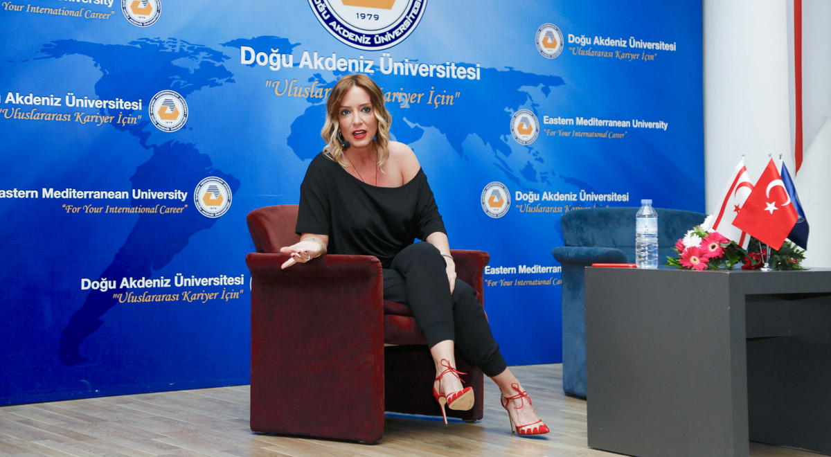 Doğu Akdeniz Üniversitesi (DAÜ) 22. Bahar Festivali kapsamında Tv 8 ekranlarında yayınlanan “Saba ile Oyuna Geldik” programının sunucusu ve “Bayan Kahkaha” olarak bilinen Saba Tümer’i ağırladı. Mustafa Afşin Ersoy Salonu’nda öğrenciler ile bir araya gelen Tümer DAÜ’de keyifli bir söyleşi gerçekleştirdi.