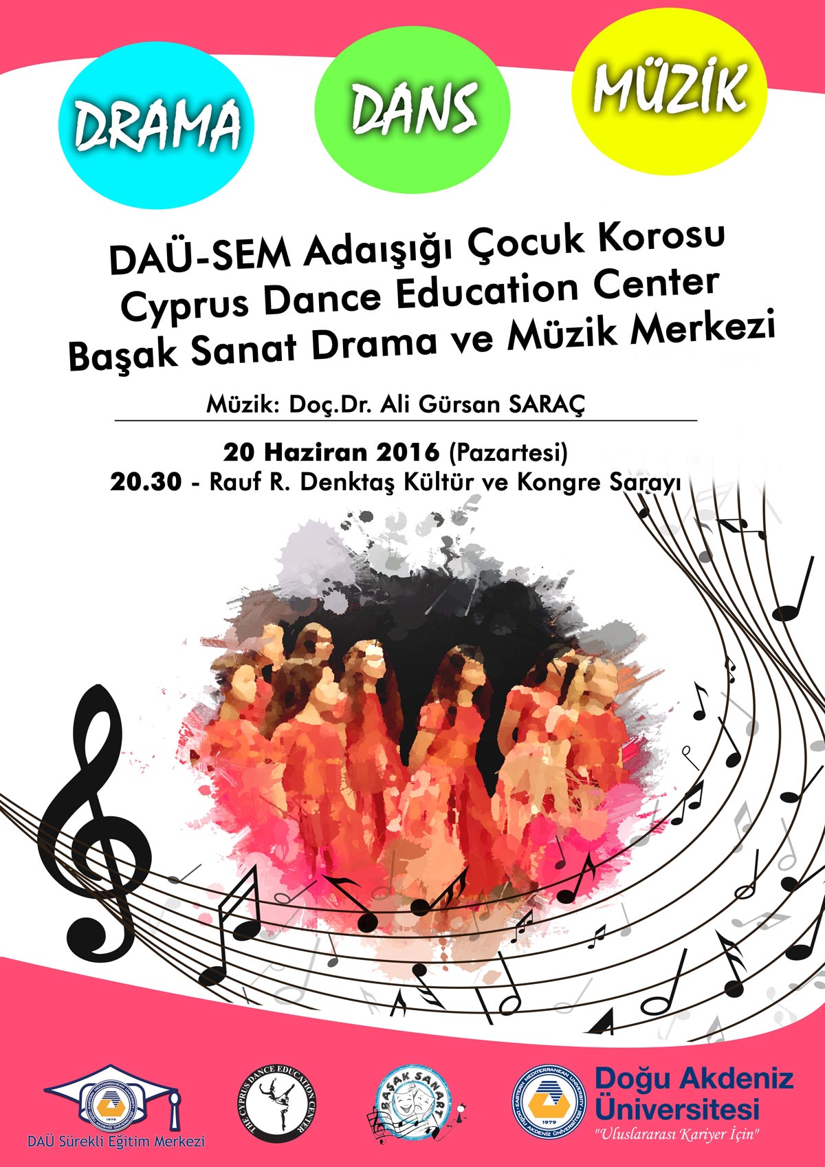 DAÜ-SEM Ada Işığı Çocuk Korosu, müziklerini Yrd. Doç. Dr. Ali Gürsan Saraç’ın yaptığı şarkıları, drama ve dans eşliğinde 20 Haziran 2016 Pazartesi günü, saat 20.30’da, Rauf Raif Denktaş Kültür ve Kongre Sarayı’nda gerçekleştirilecek bir konserle müzikseverlere sunacak.