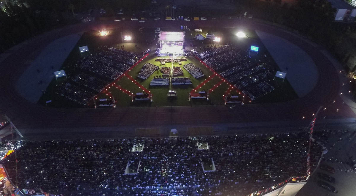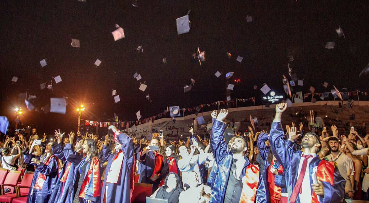 Tören, mezunların stadyuma giriş yapması ve yerlerine yerleşmesinin ardından gerçekleştirilen Saygı Duruşu ve İstiklal Marşı ile başladı. DAÜ mezunları adına gerçekleştirilen öğrenci konuşmalarının ardından Sembolik Ağaç Dikimi ile tören devam etti.