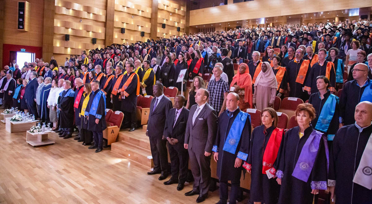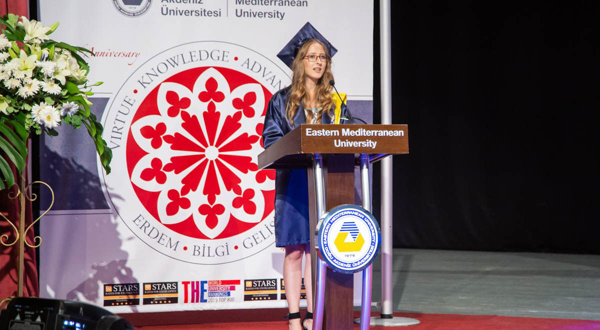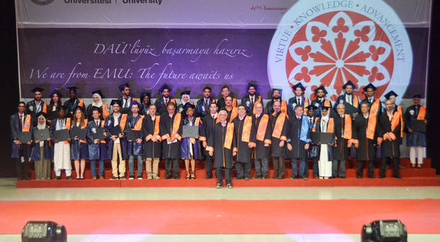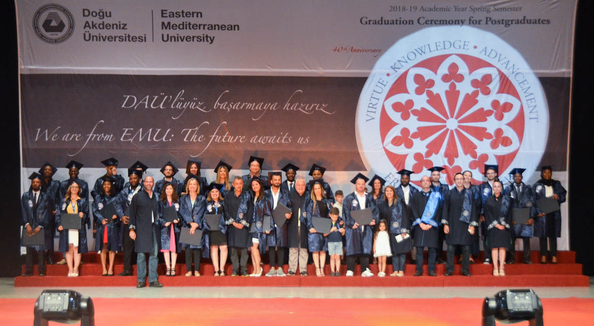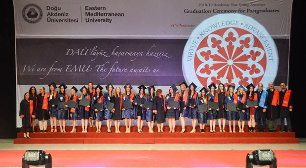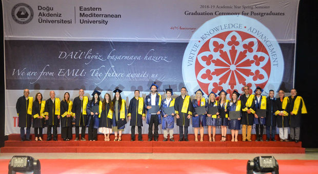 Doğu Akdeniz Üniversitesi (DAÜ) 2018-2019 Akademik Yılı Bahar Dönemi Lisansüstü Mezuniyet Töreni, 1 Temmuz 2019 Pazartesi günü, saat 15:00’te, Rauf Raif Denktaş Kültür ve Kongre Sarayı’nda gerçekleştirildi. Geçtiğimiz yıl olduğu gibi bu yıl da yüksek lisans ve doktora mezunlarının diplomalarını ayrı bir törenle aldığı mezuniyet töreni, DAÜ TV aracılığıyla internet ortamında tüm dünyaya canlı olarak yayınlandı. 106 ülkeden 20 bini aşkın öğrenci sayısı ile akademik hayatın yanında sosyal ve kültürel hayata da yön verip lokomotif görevini üstlenen ve Bahar Dönemi’nde 2600’e yakın mezun verecek olmanın heyecanını yaşayan DAÜ, dünyanın önde gelen eğitim kurumlarından biri olarak öğrencisini karşılarken gösterdiği hassasiyeti ve heyecanı, öğrencilerini mezun ederken de göstermeye devam ediyor.