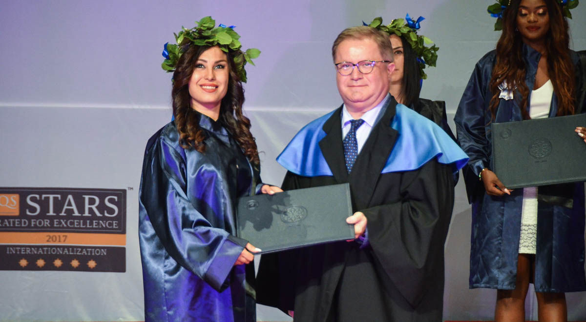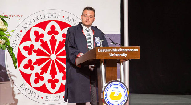 2018-2019 Akademik Yılı Bahar Dönemi Doktora Mezunları’nı temsilen konuşma yapan İşletme ve Ekonomi Fakültesi, Finans Bölümü Doktora Programı Mezunu Alexander Zabolotkov da, DAÜ’nün dünyanın önde gelen üniversitelerinden biri olduğunu belirterek, ailelere ve akademisyenlere bu anlamlı günde sevinçlerine ortak oldukları için tüm mezun arkadaşları adına teşekkür etti.