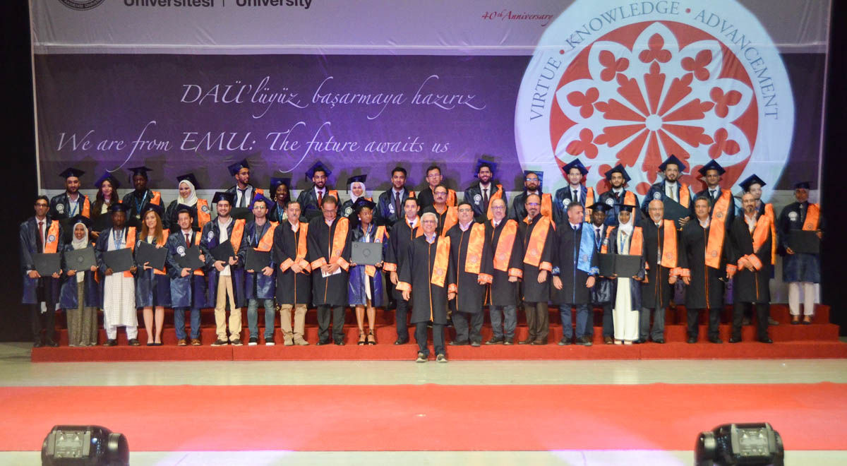 Bu kapsamda düzenlenen görkemli törene; Nijerya’nın Ankara Büyükelçiliği Temsilcileri Ahmed Mohammed Monguno ve Augustine Uche-Chukwu, Bologna Üniversitesi Rektör Temsilcisi ve Hukuk Fakültesi Dekanı Prof. Dr. Luca Mezzetti, YÖDAK Kurul Üyesi Hasret Balcıoğlu, DAÜ Rektörü Prof. Dr. Necdet Osam, Kıbrıs Sosyal Bilimler Üniversitesi Rektörü Prof. Dr. Mustafa Tümer, DAÜ Lisansüstü Eğitim, Öğretim ve Araştırma Enstitüsü Müdür Vekili Prof. Dr. Ali Hakan Ulusoy, Rektör Yardımcıları, Dekanlar, Bölüm Başkanları, akademik personel ve 450’yi aşkın lisansüstü mezun ile aileleri katıldı.