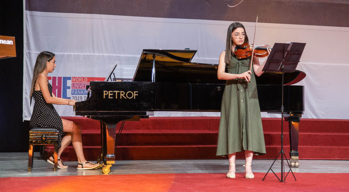 Tören, 2018 – 2019 Akademik Yılı Bahar Dönemi Lisansüstü Mezunları’nın müzik ve alkışlar eşliğinde salona girişi ile başladı. Mezunlar salona giriş yaptığı esnada akademisyenler ayağa kalkarak, mezunların başarılarında büyük pay sahibi olan velilere doğru döndü ve öğrencilerini karşıladı. Mezunların salona girişiyle oldukça duygu dolu anların yaşandığı tören, Saygı Duruşu ve İstiklal Marşı’nın ardından, DAÜ Eğitim Fakültesi, Güzel Sanatlar Eğitimi Bölümü, Müzik Öğretmenliği Programı öğrencileri Burcu Arıkel (keman) ve Zehra Türkseven’in (piyano) klasik müzik dinletisiyle devam etti. Müzik dinletisinin ardından, 2018-2019 Akademik Yılı Bahar Dönemi Yüksek Lisans Mezunlarını temsilen DAÜ Fen ve Edebiyat Fakültesi, Türk Dili ve Edebiyatı Bölümü Yüksek Lisans Programı Mezunu Ayşe Gürer bir konuşma yaptı.