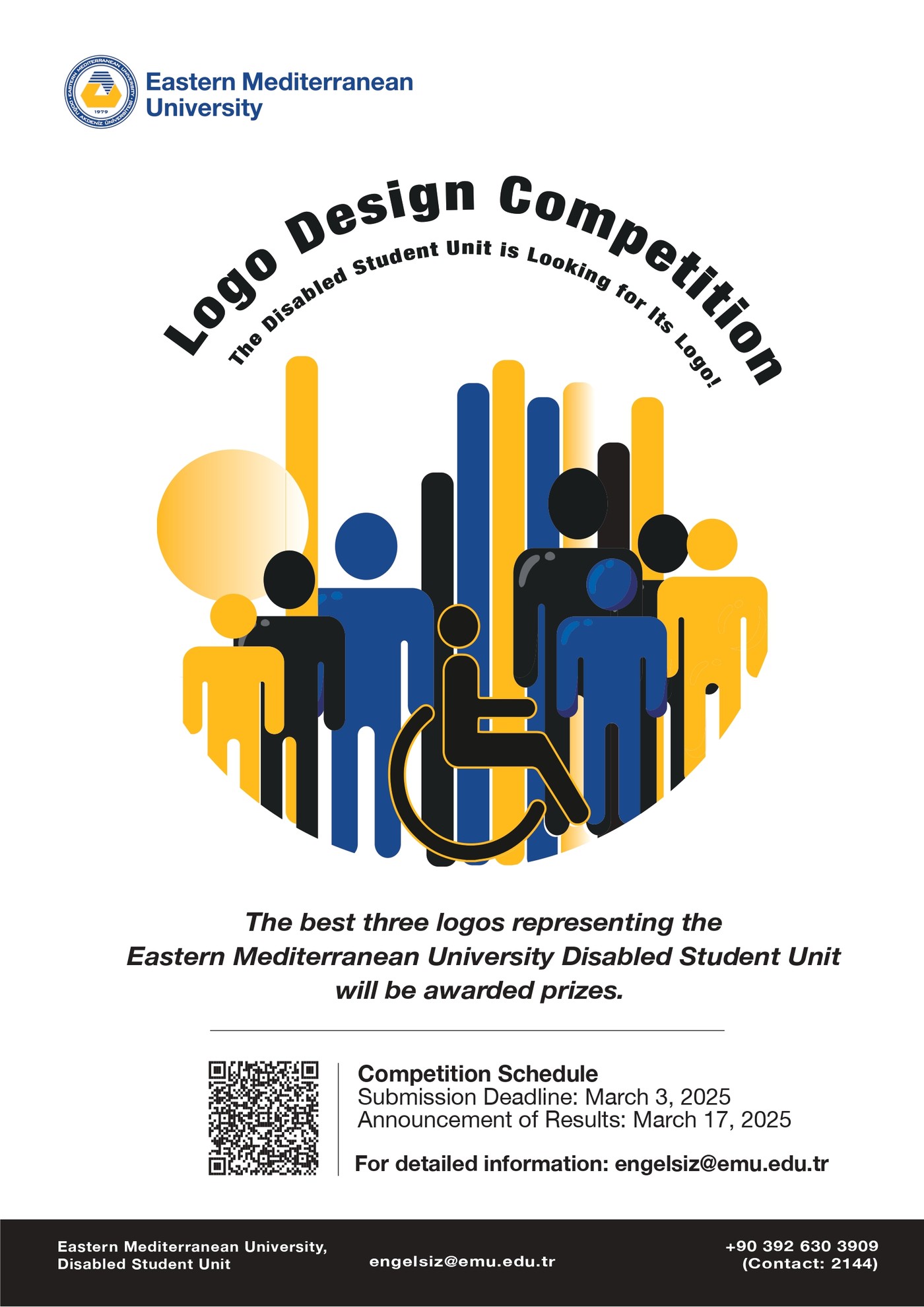 Doğu Akdeniz Üniversitesi (DAÜ) Engelli Öğrenci Birimi, farkındalık yaratmak amacıyla birimin vizyonunun da yansıtılacağı bir logo tasarım yarışması düzenliyor. “Engelli Öğrenci Birimi Logosu’nu Arıyor!” sloganı ile duyurulan yarışmanın son başvuru tarihi 3 Mart 2025, saat 17.00 olarak belirlendi.