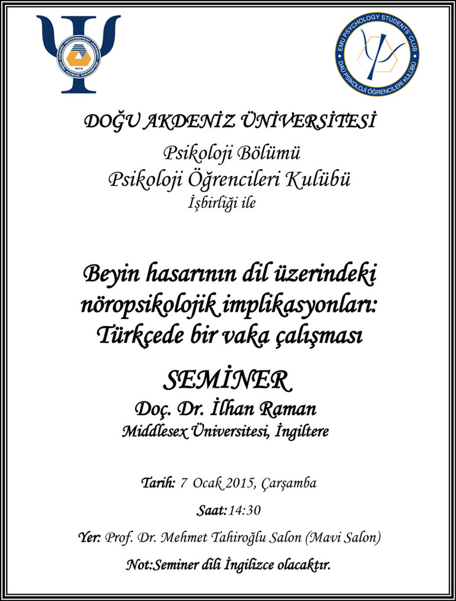 Yer: DAÜ-PDRAM Seminer Odası