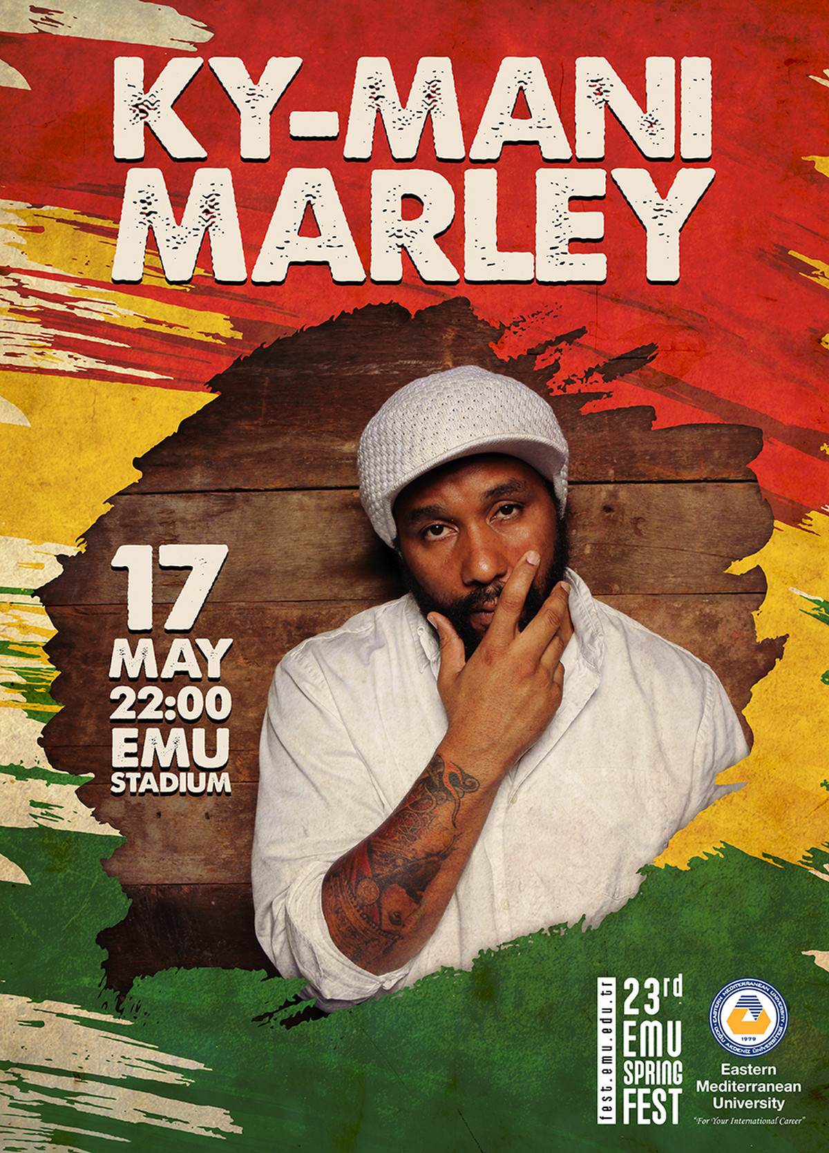 Prş, 11 Mayıs 2017 21:26:00 #ky-mani marley#springfest-2017 Başlangıç: Çrş, 17 Mayıs 2017 22:00:00 Bitiş: Çrş, 17 Mayıs 2017 23:59:00 Yer: DAÜ Stadyumu Eastern Mediterranean University Eastern Mediterranean University