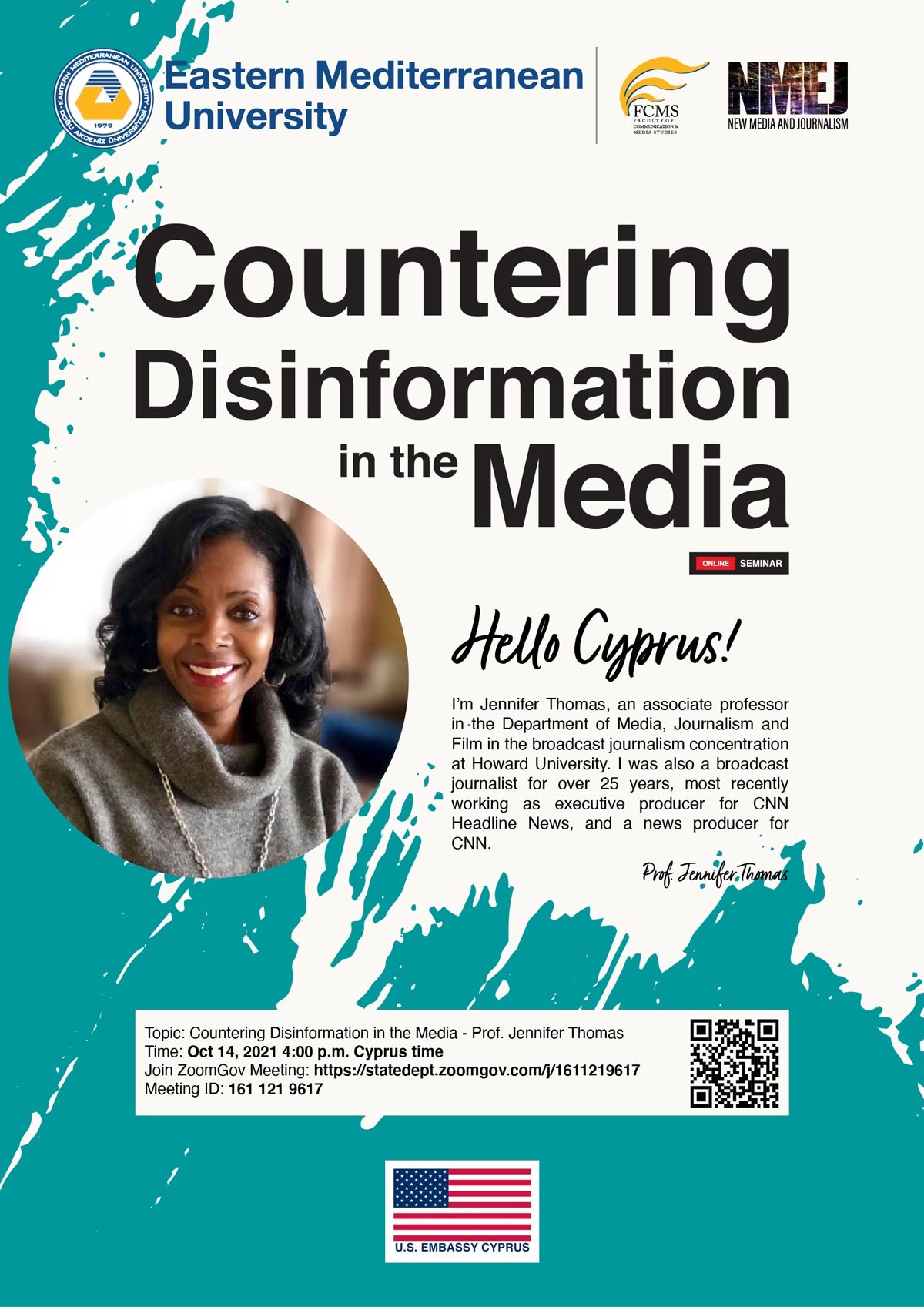 Doğu Akdeniz Üniversitesi (DAÜ) İletişim Fakültesi, Yeni Medya ve Gazetecilik Bölümü ve Amerika Birleşik Devletleri (ABD) Kıbrıs Büyükelçiliği’nin iş birliğiyle “Medyada Dezenformasyon” isimli çevrim içi seminere Prof. Jennifer Thomas katılıyor.