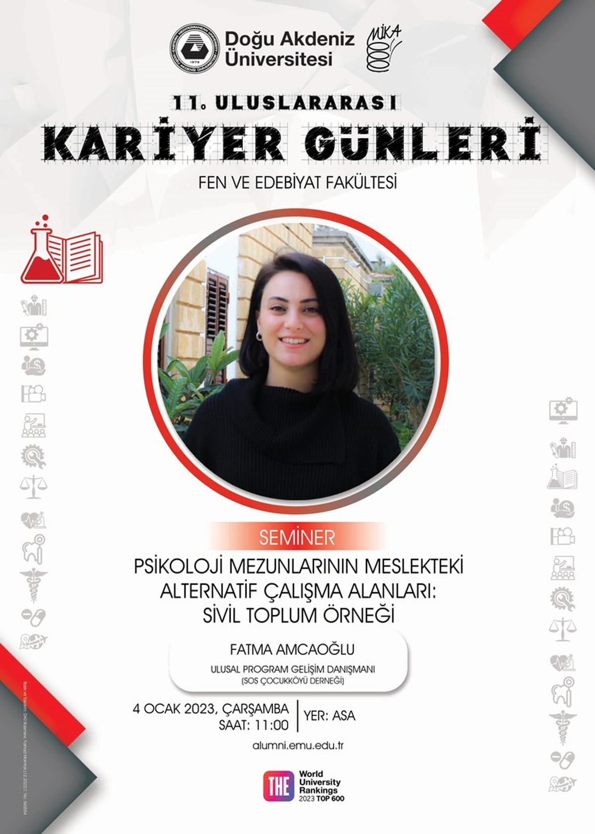 Sal, 3 Ocak 2023 12:02:00 #fatma amcaoğlu Başlangıç: Çrş, 4 Ocak 2023 11:00:00 Bitiş: Çrş, 4 Ocak 2023 17:00:00 Yer: Fen ve Edebiyat ASA Eastern Mediterranean University Eastern Mediterranean University