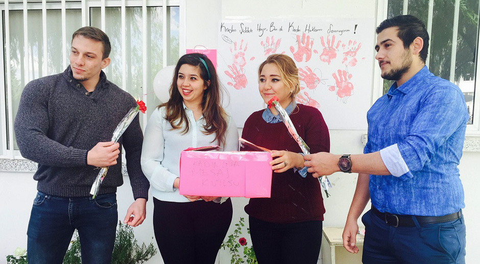 Doğu Akdeniz Üniversitesi (DAÜ), Toplumsal Duyarlılık Merkezi çatısı altında toplanan sosyal sorumluluk projelerine bir yenisi daha eklendi. DAÜ İletişim Fakültesi, Halkla ilişkiler ve Reklamcılık Bölümü öğretim görevlisi Dr. Umut Ayman tarafından yürütülen Pazarlama İletişimi İçin Sosyal Sorumluluk dersinde, Sevil Turgay, Hüseyin Dadaşov, Kübra Acar ve Batuhan Bilgehan tarafından ‘Dünya Kadın Hakları Günü’ kapsamında sosyal sorumluluk projesi gerçekleştirildi.