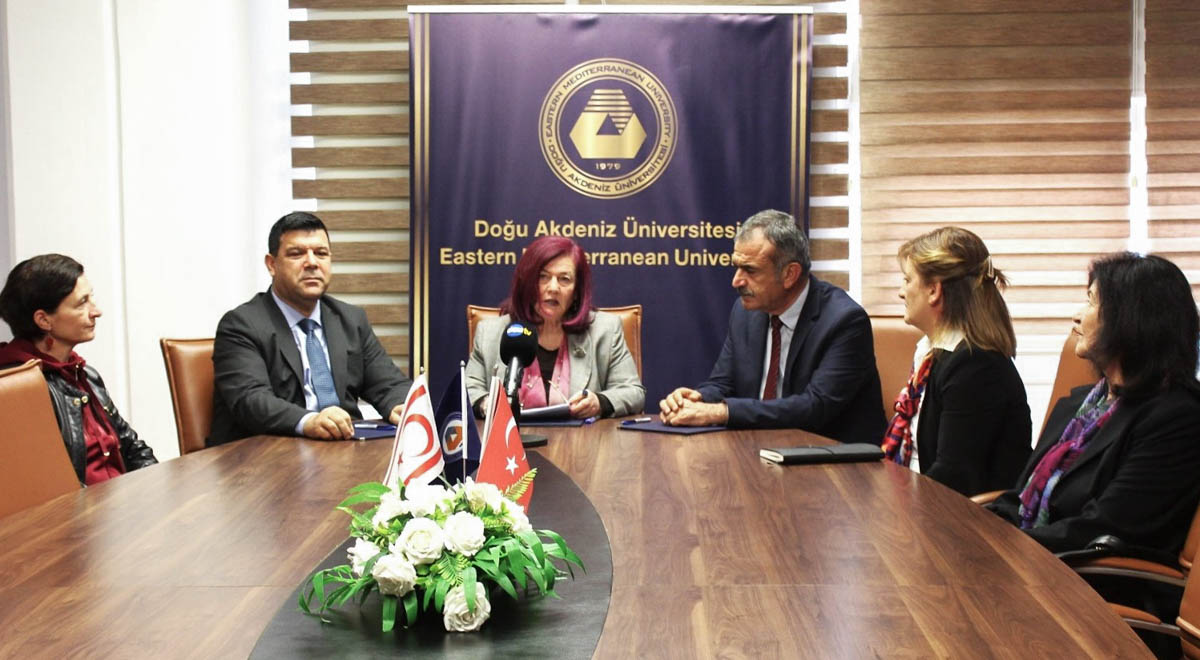 Doğu Akdeniz Üniversitesi (DAÜ) ile Gazimağusa Belediyesi ve Mağusa Kadın Merkezi Derneği (MAKAMER) arasında, Gazimağusa’nın Çanakkale bölgesinde yer alan ve uluslararası bir öneme sahip olan Ayluga sulak alanında halkın nefes alabileceği ve göletin doğal güzelliklerini izleyebileceği bir doğal yaşam parkı oluşturulması için iş birliği protokolü imzalandı. Söz konusu protokolün imza töreni, 3 Ocak 2024 Çarşamba günü, saat 15:00’te, DAÜ Rektörü Prof. Dr. Hasan Kılıç’ın makamında gerçekleşti. Protokole DAÜ Rektörü Prof. Dr. Hasan Kılıç, Gazimağusa Belediye Başkanı Dr. Süleyman Uluçay ve MAKAMER Başkanı Sıdıka Özdoğan imza koydu. Protokol İmza Töreni’nde DAÜ Mimarlık Fakültesi, Mimarlık Bölümü Öğretim Üyesi ve DAÜ adına Proje Koordinatörü Doç. Dr. Müge Rıza, MAKAMER Çevre Komitesi Sorumlusu ve MAKAMER adına Proje Koordinatörü Pelin Üretici ve MAKAMER Sekreteri Serap Akalınlar da hazır bulundu.